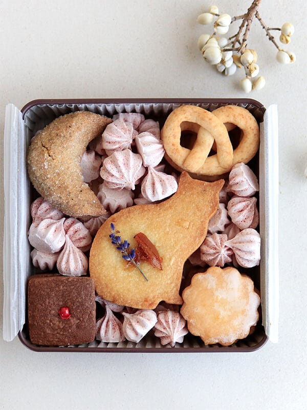 富良野花七曜の クッキー缶 Cat * 猫のクッキーがかわいい♪ 北海道産小麦 バターの6種のクッキー 焼菓子セット / 自然卵 北海道小麦 北海道産バターこだわり素材 / 母の日 プレゼント リース ドライフラワー 誕生日 ギフト 国産小麦 クッキー缶 おしゃれ ネコ ねこ