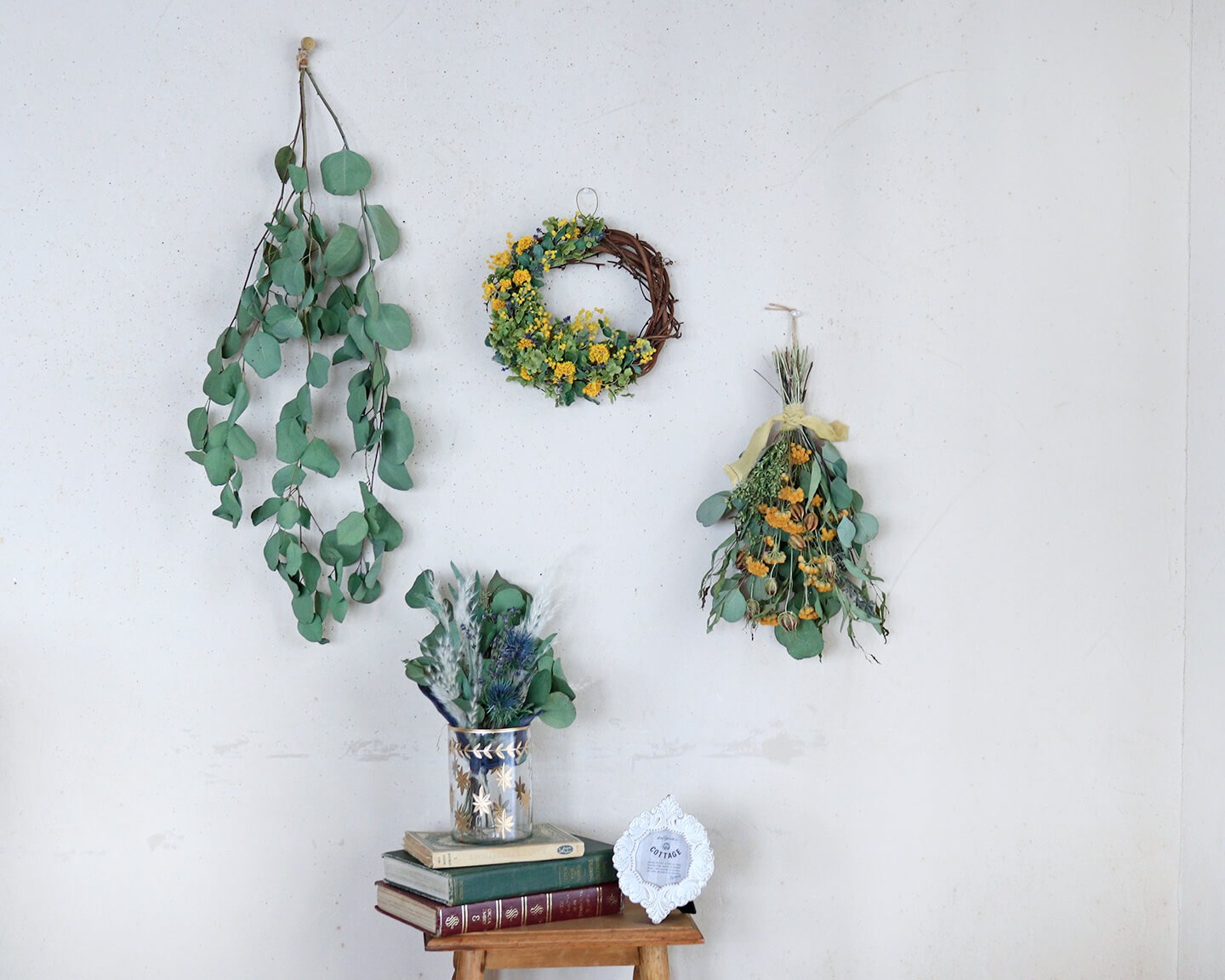 ・【1点もの】 黄色いローナスとユーカリの春色ドライフラワースワッグ