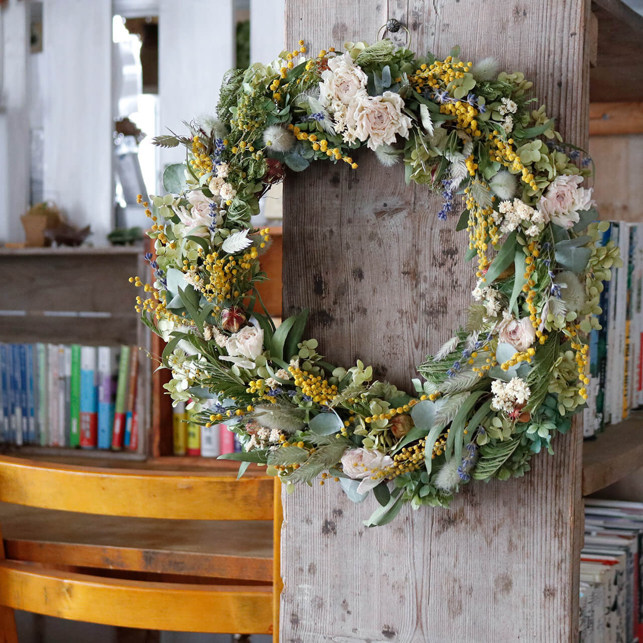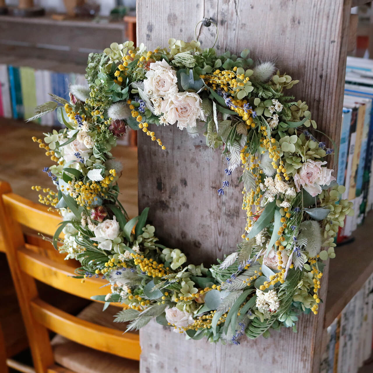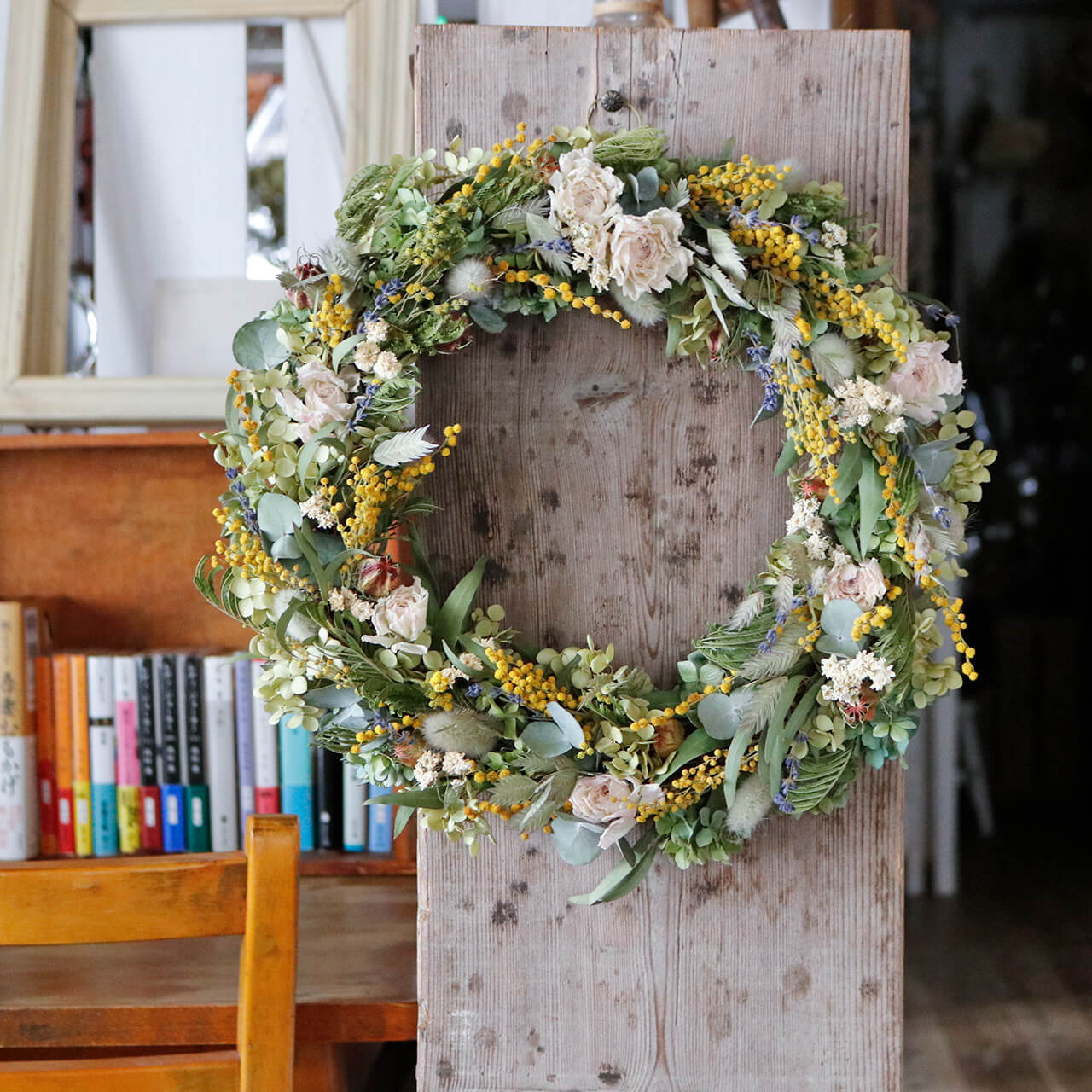 ドライフラワーリース。