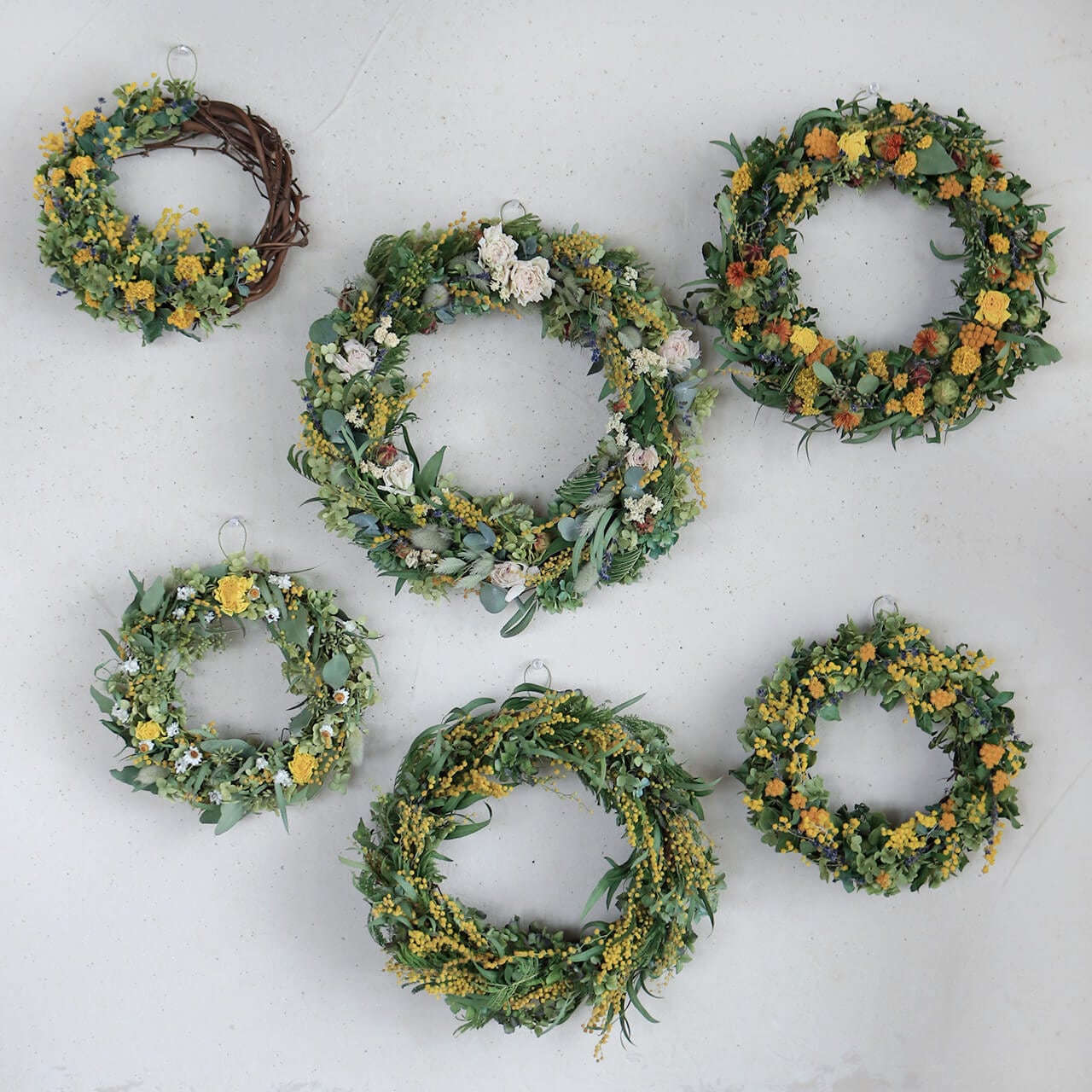 ◆自然素材ですのでお花の開き方や大きさ、リースの形・色・大きさなどには個体差があります。