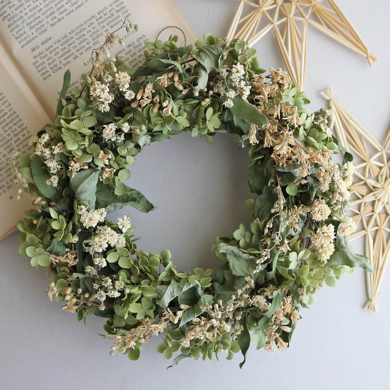 ・画像はイメージですのでアナベルとキナリのナチュラルリース以外のリースやアレンジ、ドライフラワー、雑貨などは商品に含まれておりません。