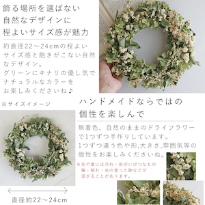 ・ドライフラワーリースの形や大きさ、色、花の付き方、雰囲気には個性があります。