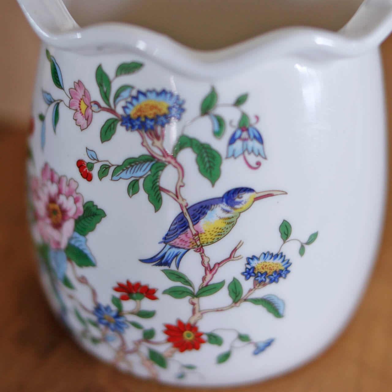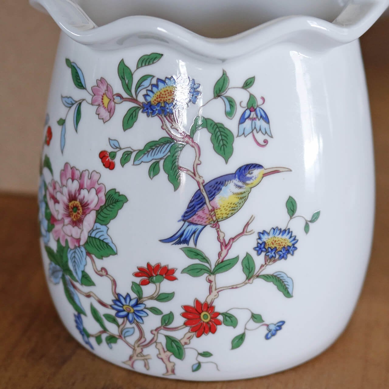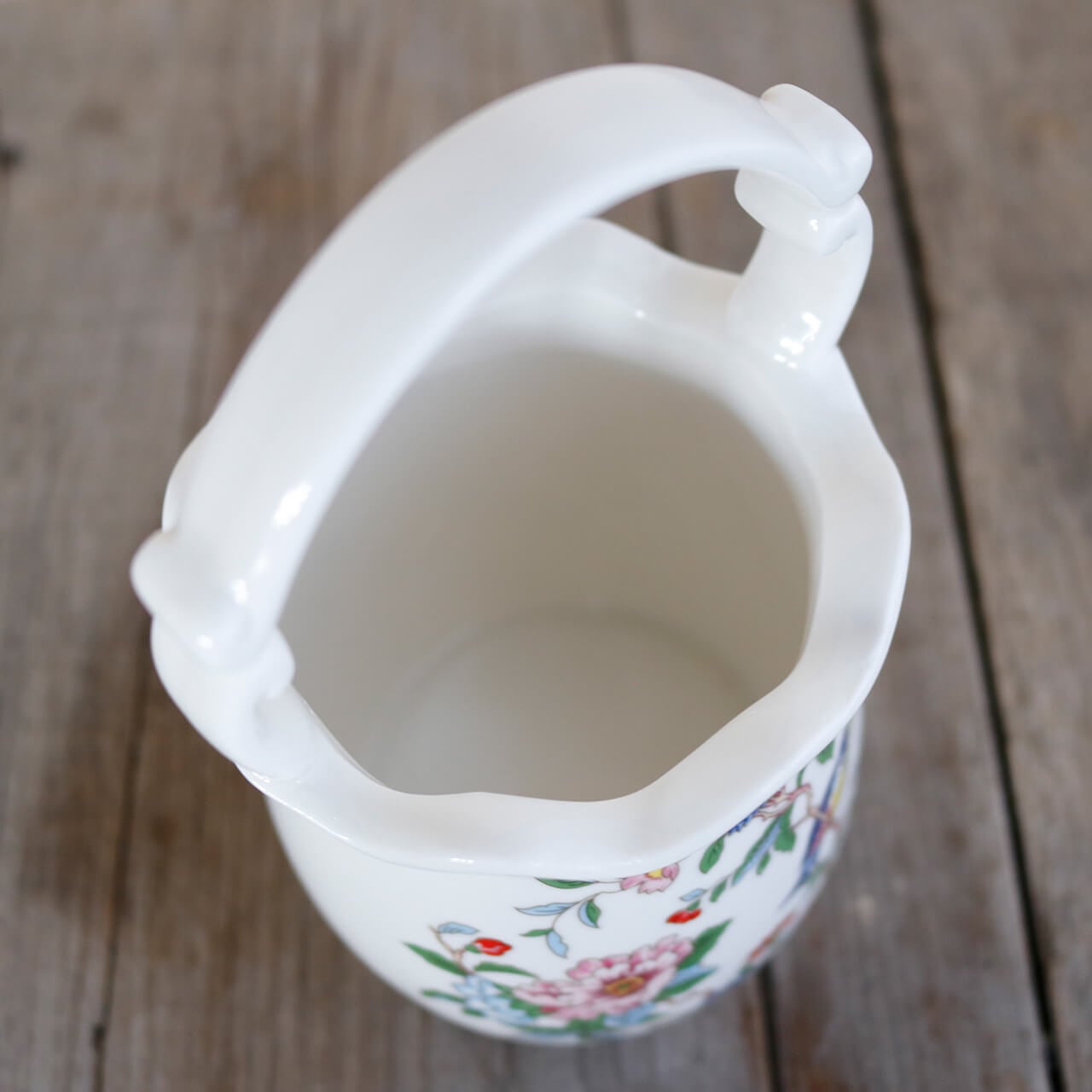 お花や小鳥が描かれたシノワな雰囲気の持ち手つき花瓶。