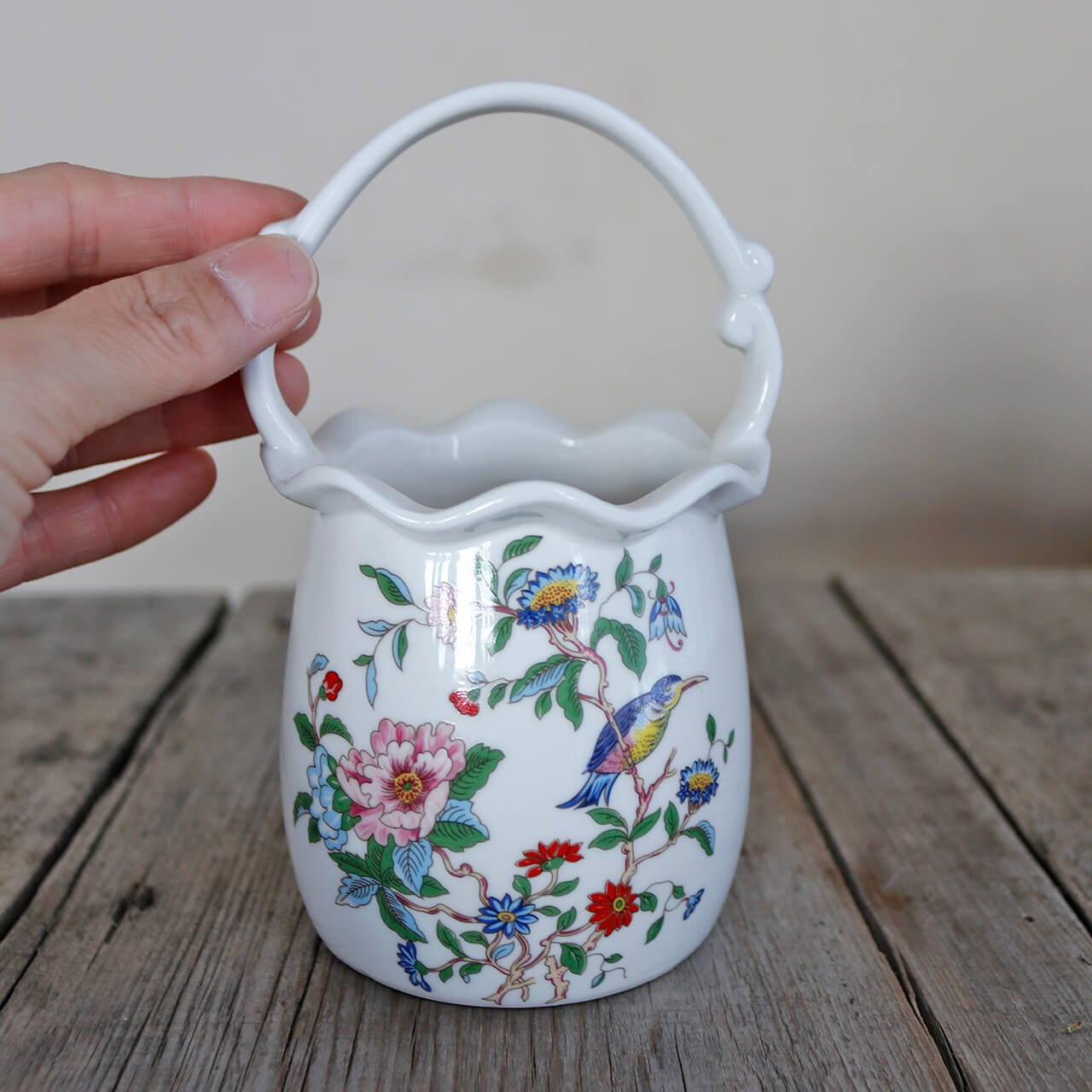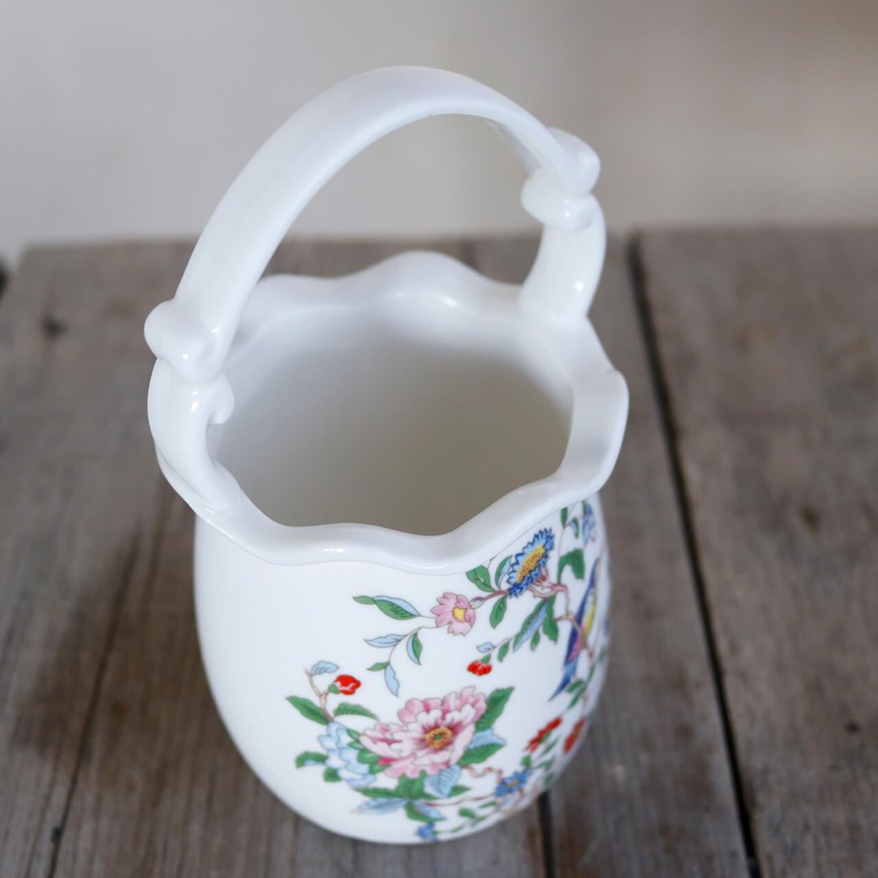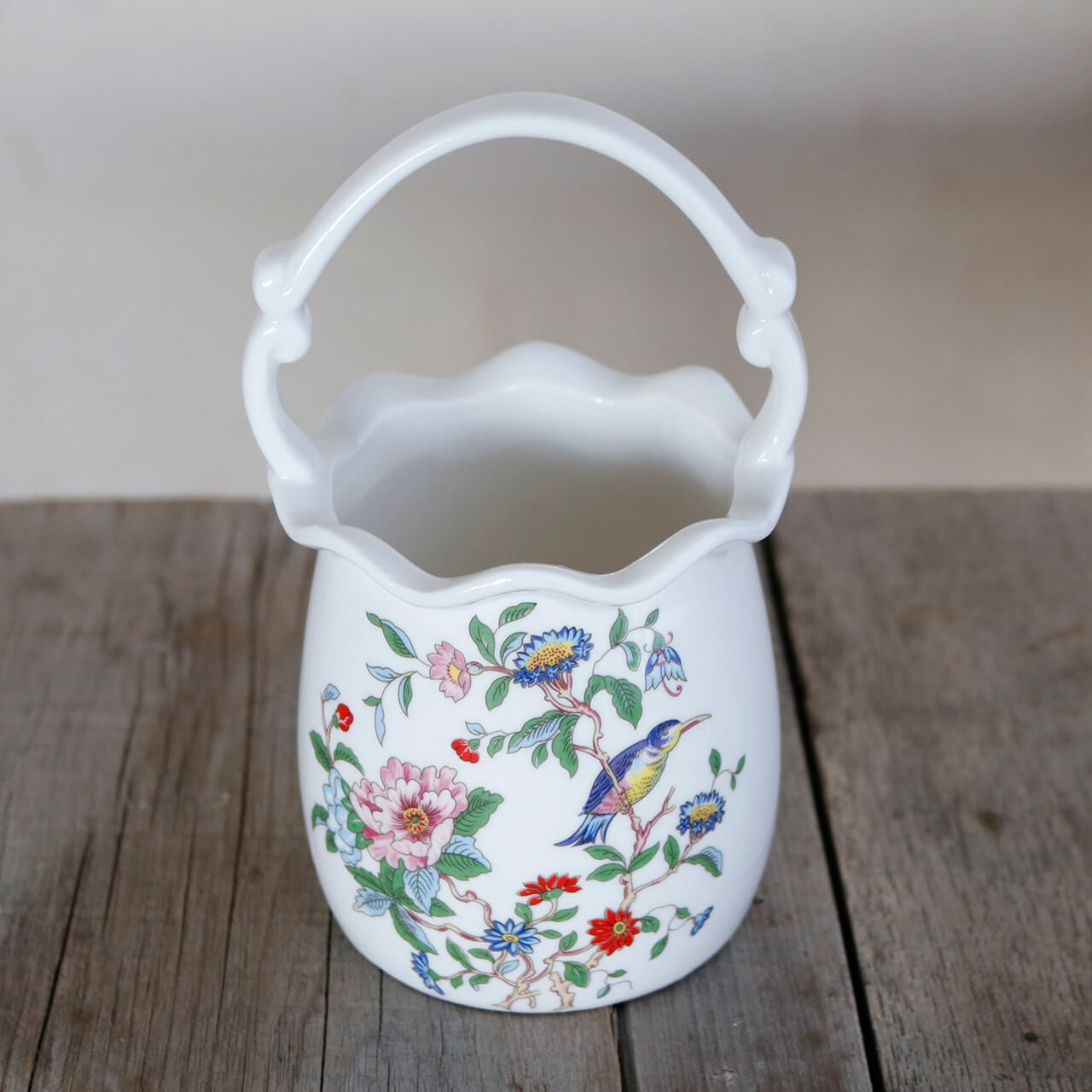 花鳥 手桶 花瓶 * 一輪挿し フラワーベース かわいい シノワズリ ナチュラルインテリア ドライフラワーのある暮らし 小鳥