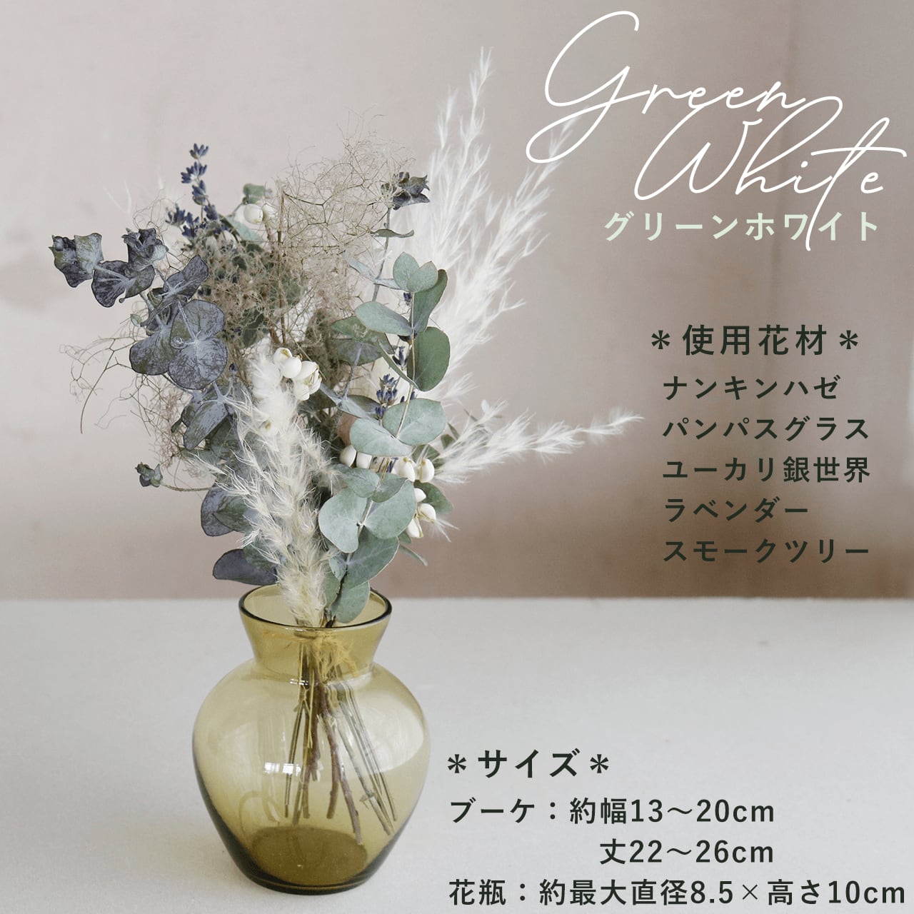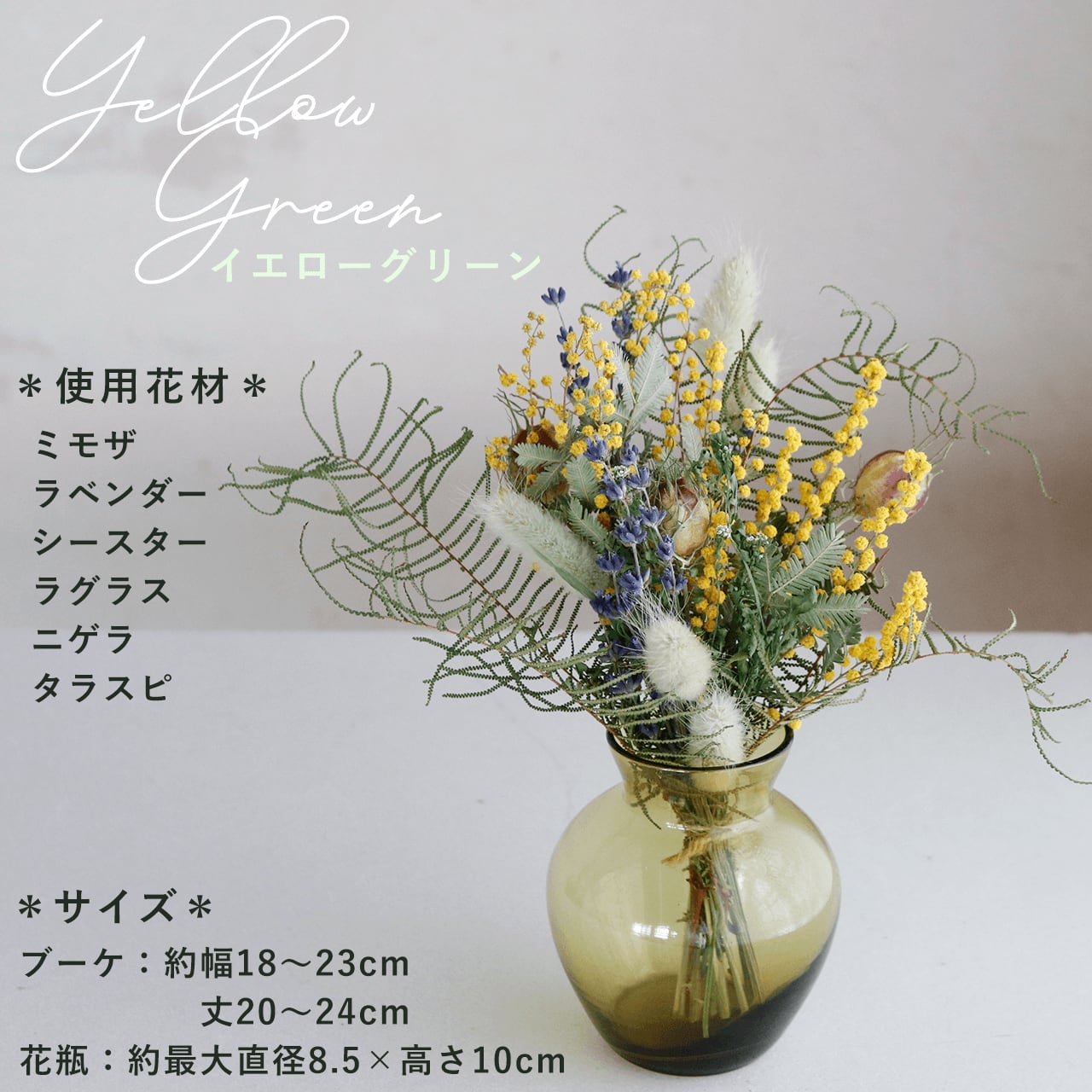 ・セット内容:ブーケ1点・ガラス花瓶1点