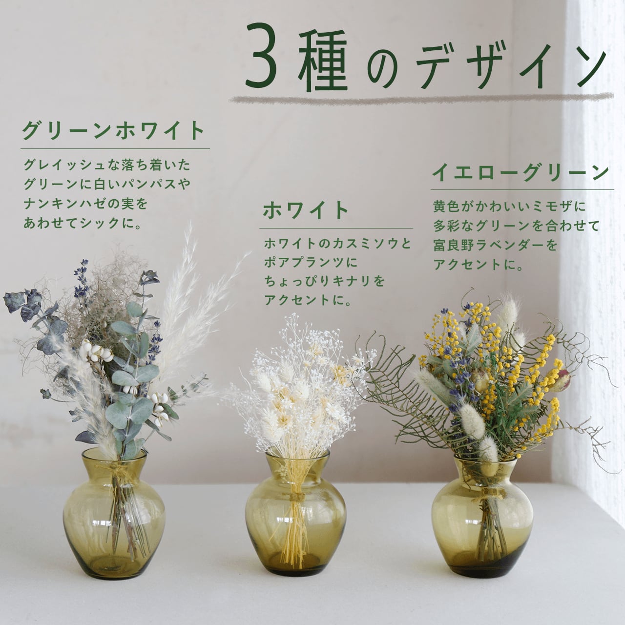 3種類の選べるブーケ。