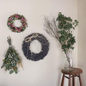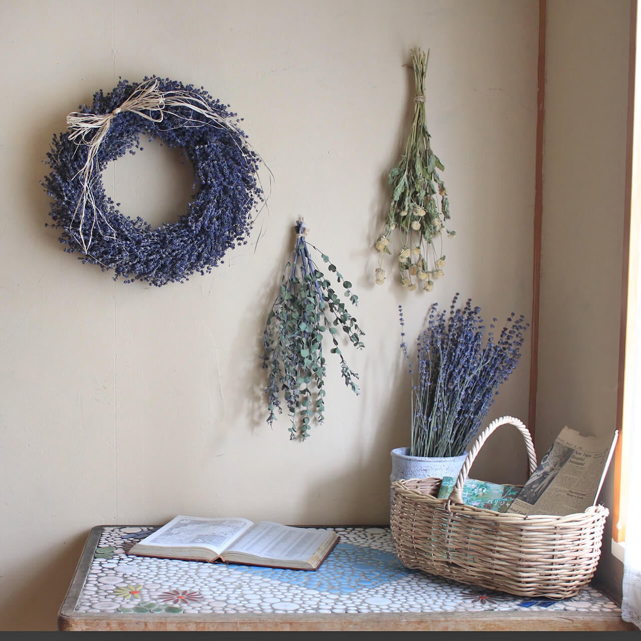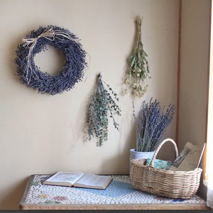 ◆ラベンダーは箱から出す際や、飾る際に多少花落ちします。飾る前に新聞などの上で、リースを持って優しくゆすって落ちそうな花を落としてから飾るのがおすすめです。