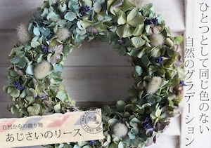 同じデザインでも一個づつ色の違うあじさいのリースになります。