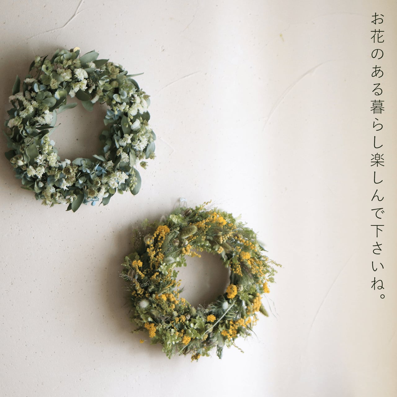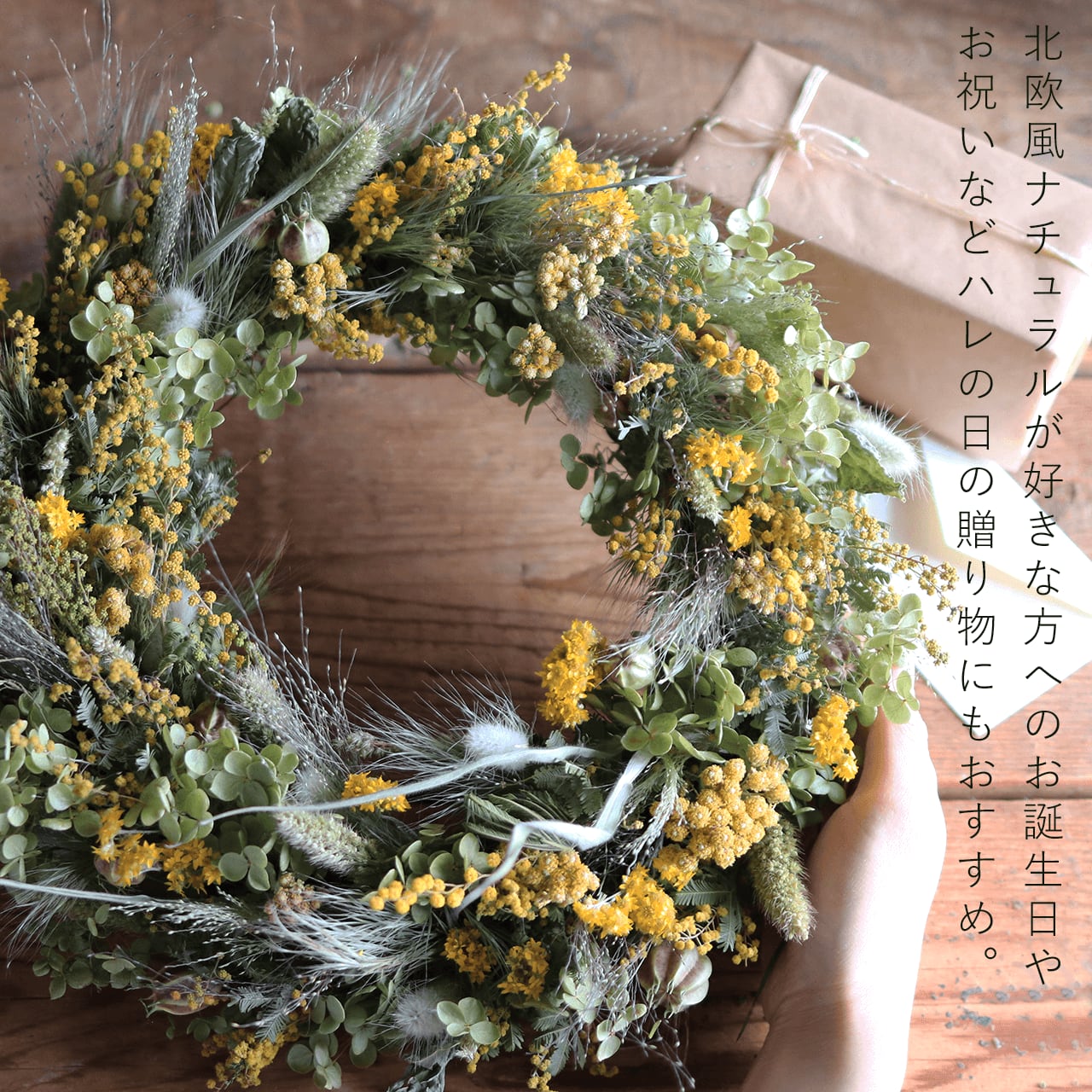 ドライフラワーならではの自然な色味と干し草のような優しい香りも魅力です。