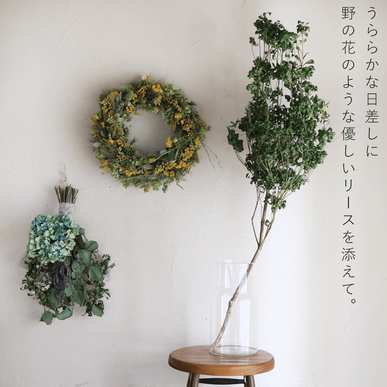 ◆画像はイメージです。野の花のリース以外のリースやアレンジ、ドライフラワーや雑貨などは商品に含まれておりません。