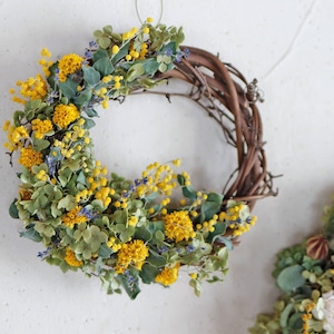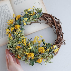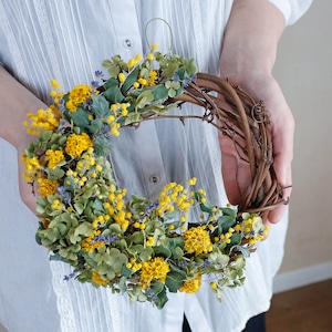 【数量限定・約直径24cm】 春色ミモザとラベンダーのハーフムーンリース * ドライフラワー フラワーリース 北欧インテリア 開店祝い 誕生日 ギフト ナチュラル かわいい ボタニカル おしゃれ バレンタインデー 母の日