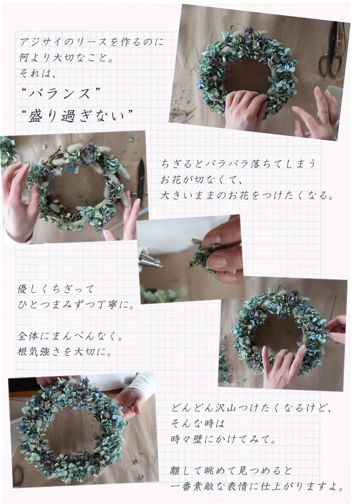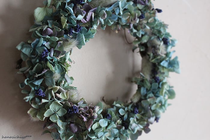 ナチュラルで大人っぽいアジサイのリースを楽しく作ってくださいね。