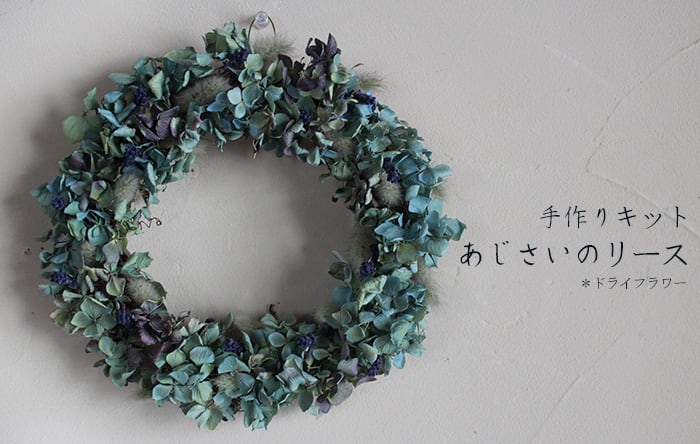 花七曜の人気のリース、あじさいのドライフラワーリースが自分で作れる手作りキット。