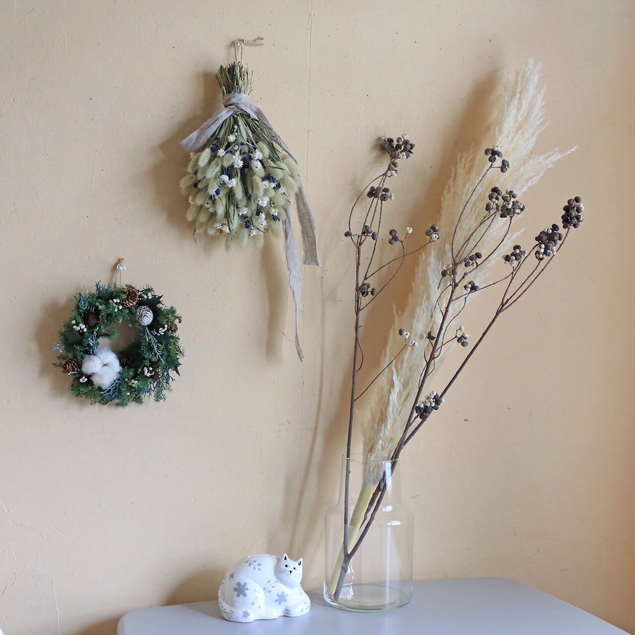 ドライフラワーと飾ってナチュラルおしゃれな北欧インテリアに。