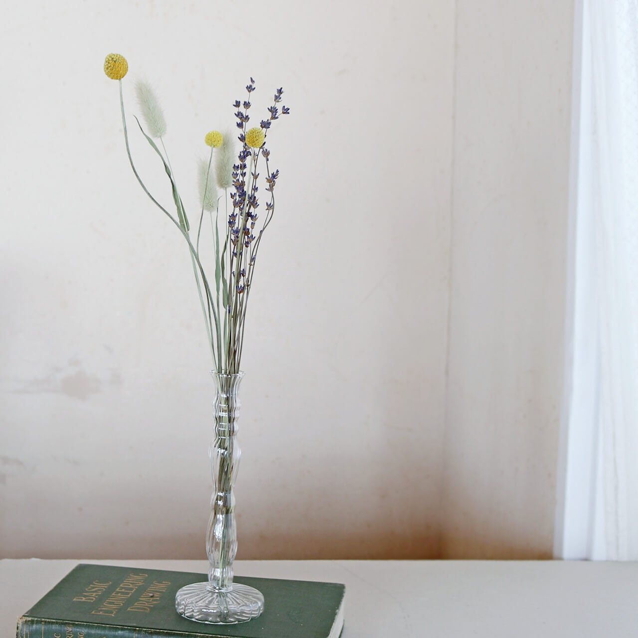 細身の繊細な印象の一輪挿しガラスベース。