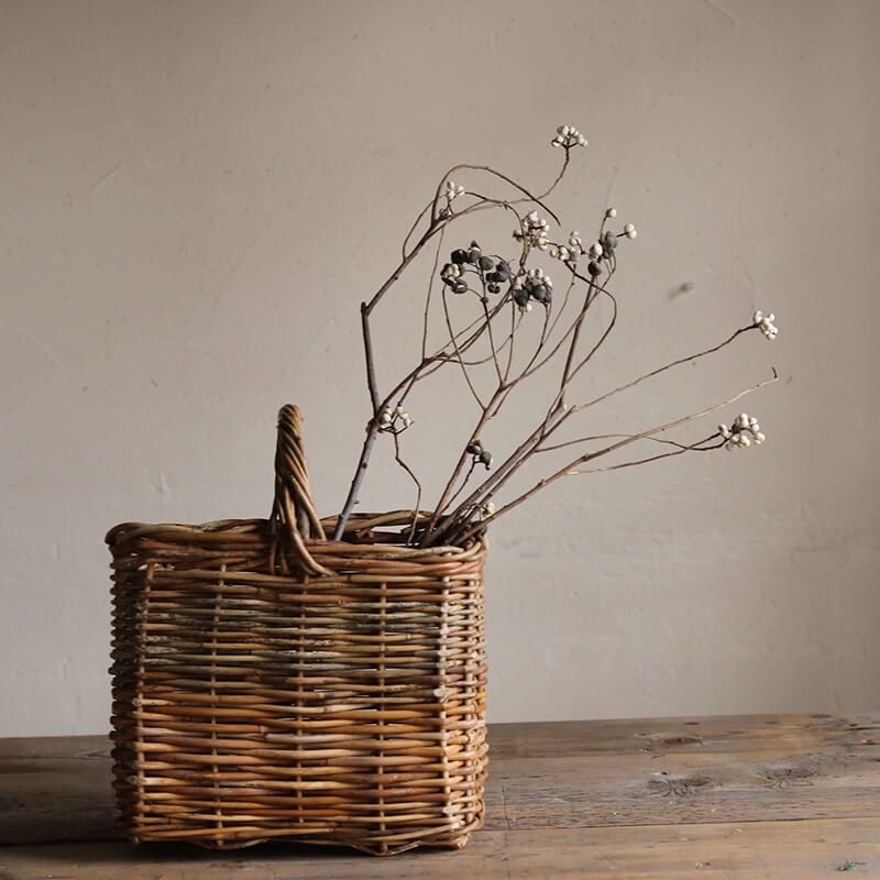 バスケットや低めのフラワーベースに枝を生かして飾るとまるで洋書にでてくるようなナチュラルでボタニカルなインテリアに。