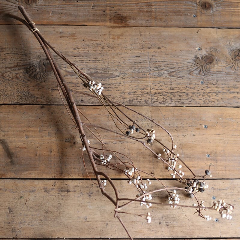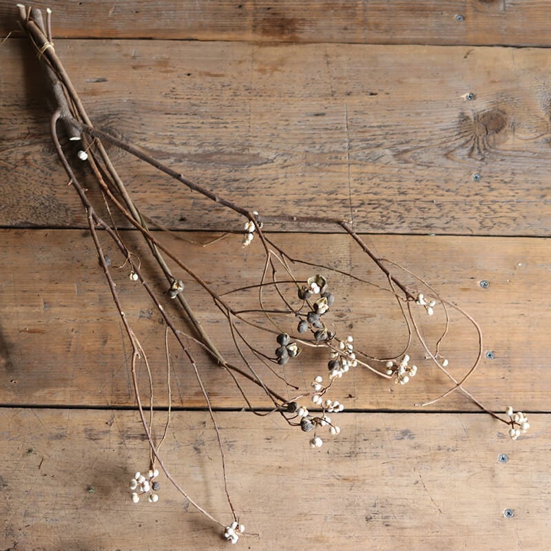 大ぶりの枝に白い雪の花が付いたようなシックでおしゃれなナンキンハゼの木のドライフラワー。