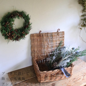 まるでヨーロッパの街角を彩るような本格派の針葉樹のスワッグタイプのブーケです。