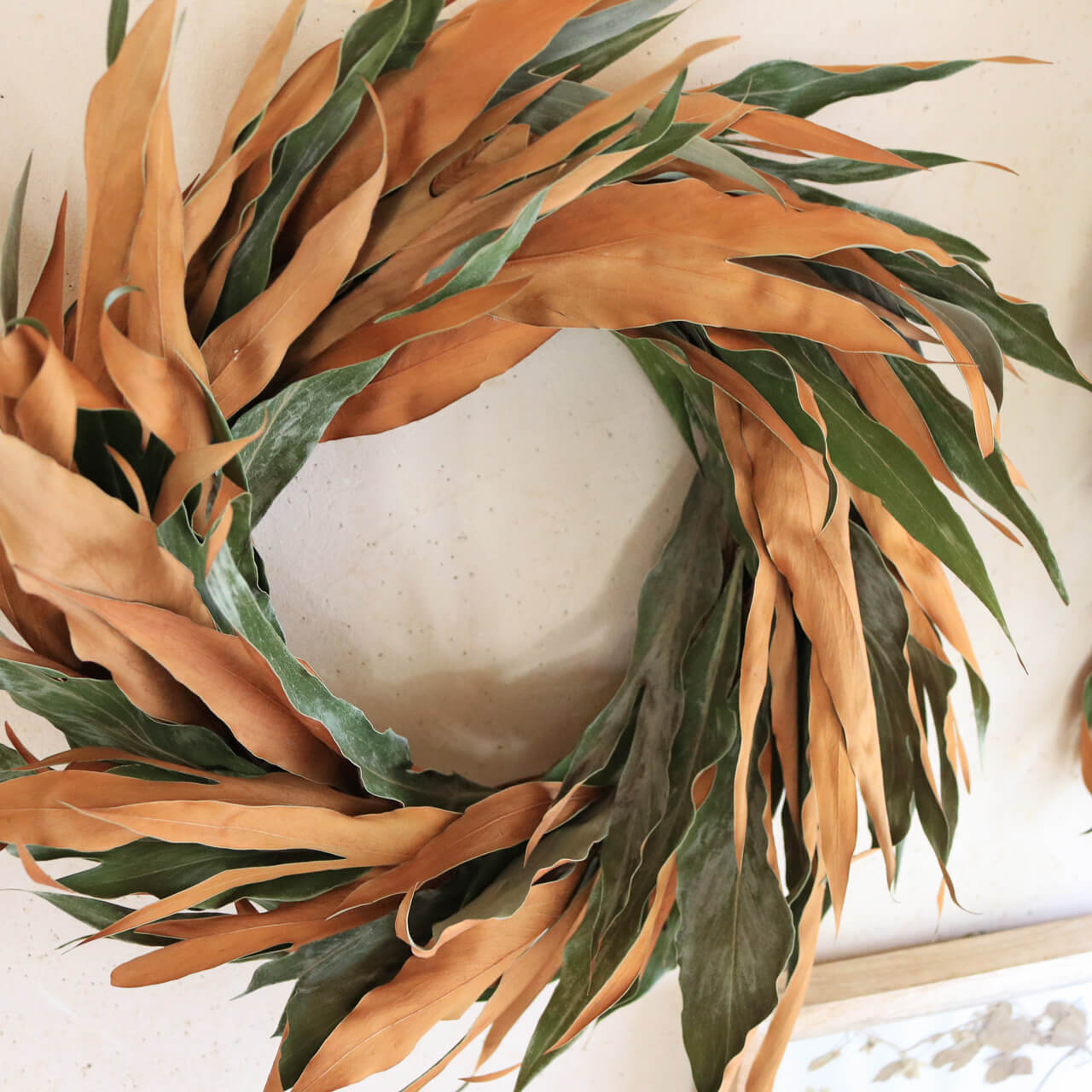 【 1点もの 約直径46cm】 グレビレアゴールドリーフの大きいリース * ドライフラワー ナチュラル かわいい 自然派 おしゃれ 北欧インテリア 誕生日 退職祝い プレゼント ギフト 花束 開店祝い ブーケ 秋 リース