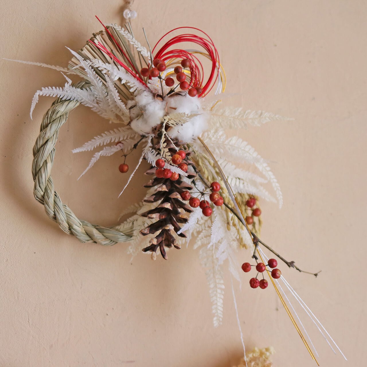 和風にも洋風にも似合うかわいいしめ縄リースで素敵なお正月を迎えてくださいね。