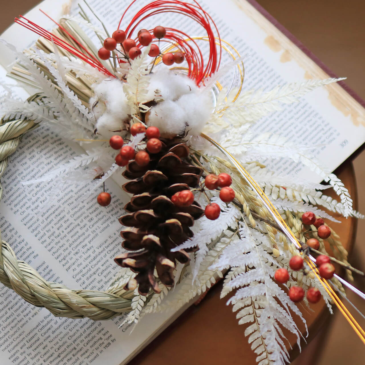 小さいながらも大人っぽくそれでいて存在感のあるお正月飾りに仕上げました。