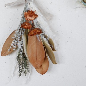 ●素材:コンパクターブラウン・富良野産グレイッシュラベンダー・グレビレアアイバン・タイサンボク・パンパスグラス(ドライフラワー)