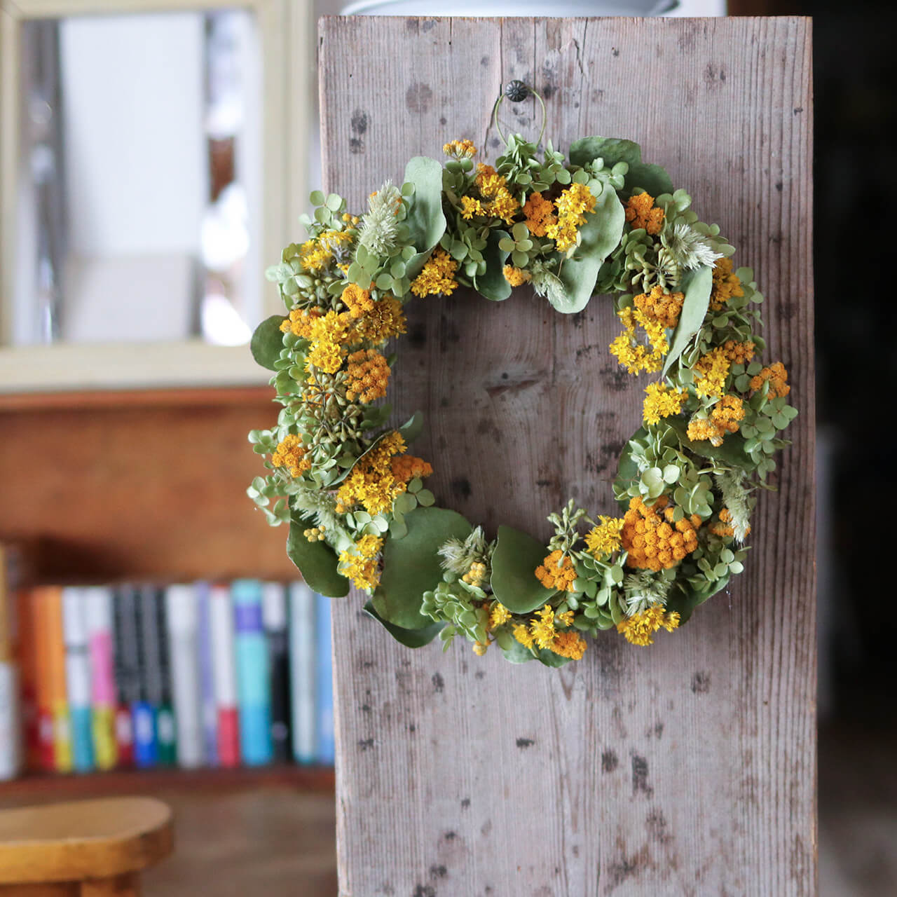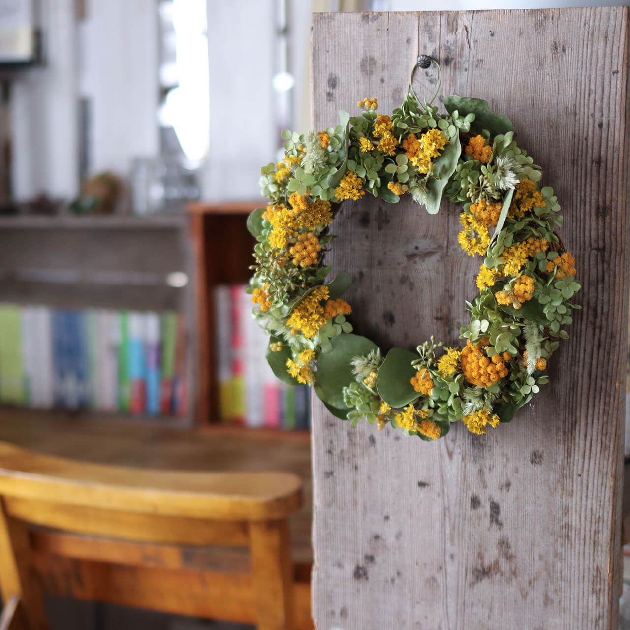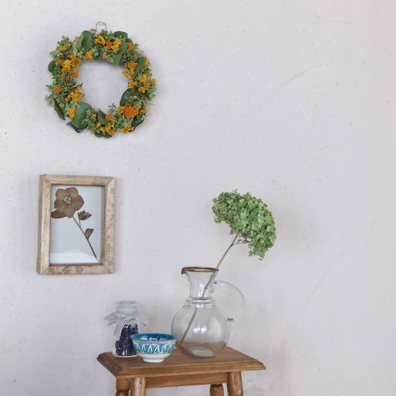 ドライフラワーグリーンや枝物とあわせてお部屋をナチュラルヒュッゲな北欧インテリアに。