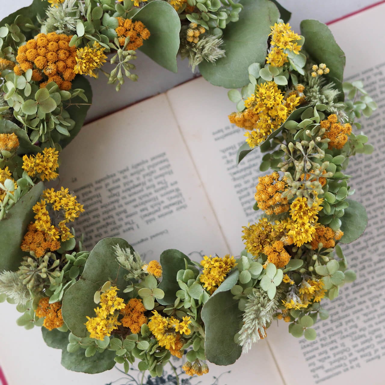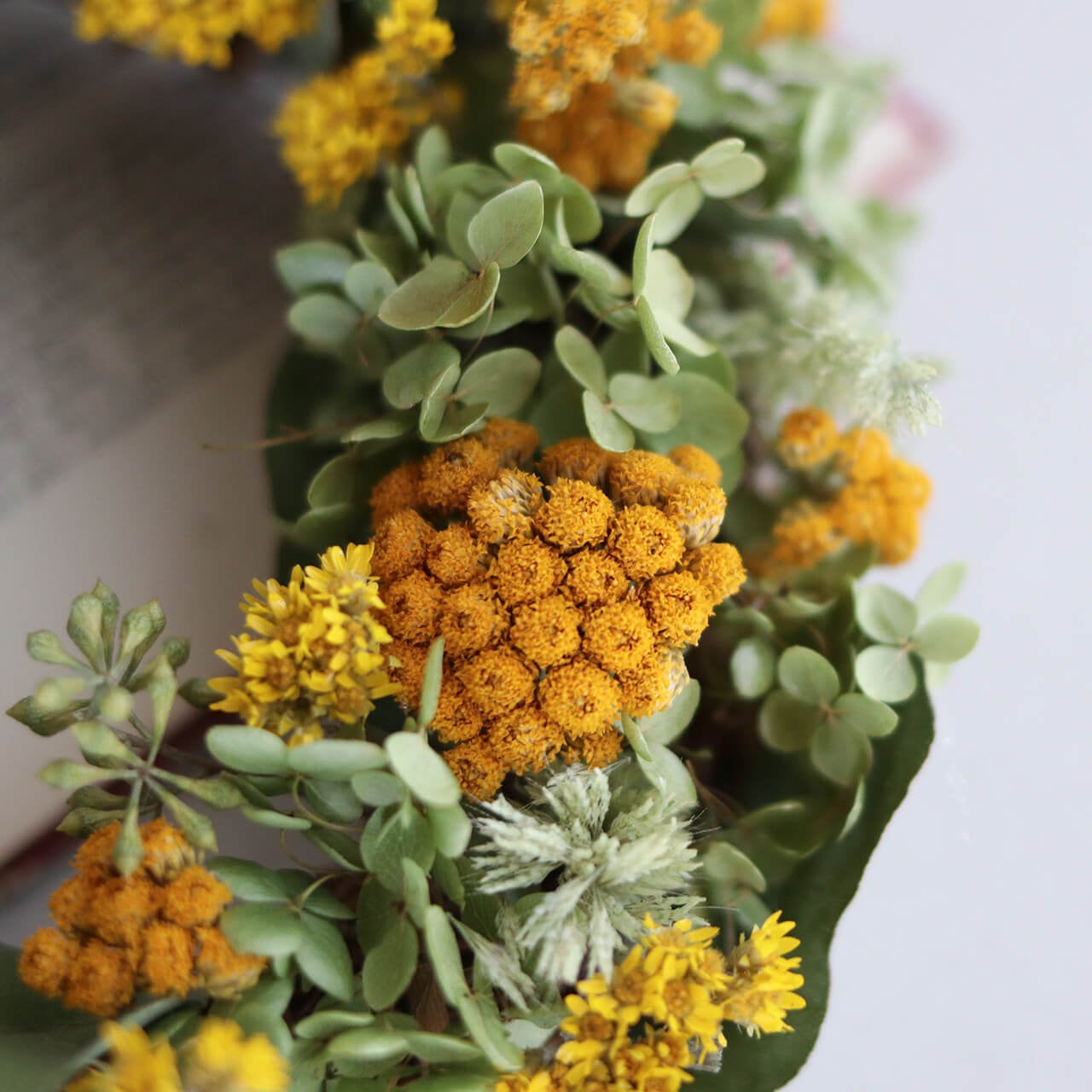 ・素材:ローナス・キバナローダンセ・アジサイアナベル・ユーカリポポラスベリー・ユーカリポポラスリーフ・ラマチュア(ドライフラワー)