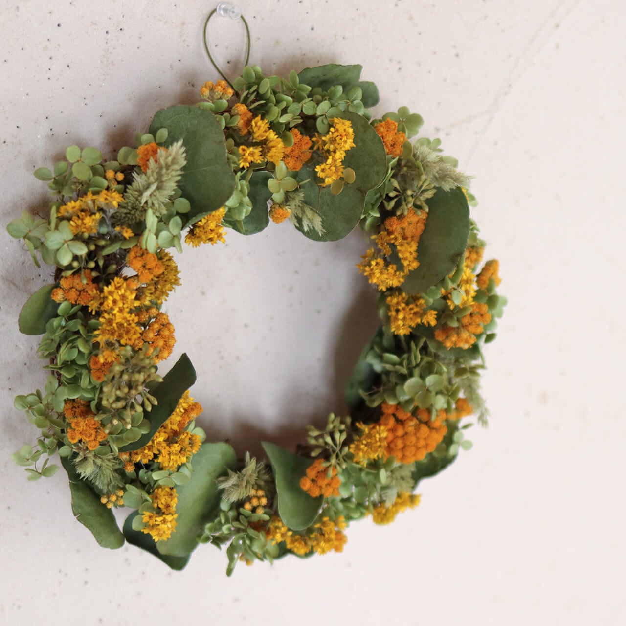 ナチュラルかわいいドライフラワーリースです。