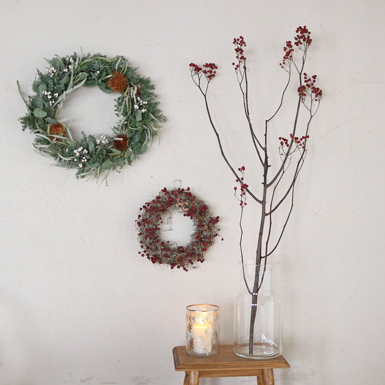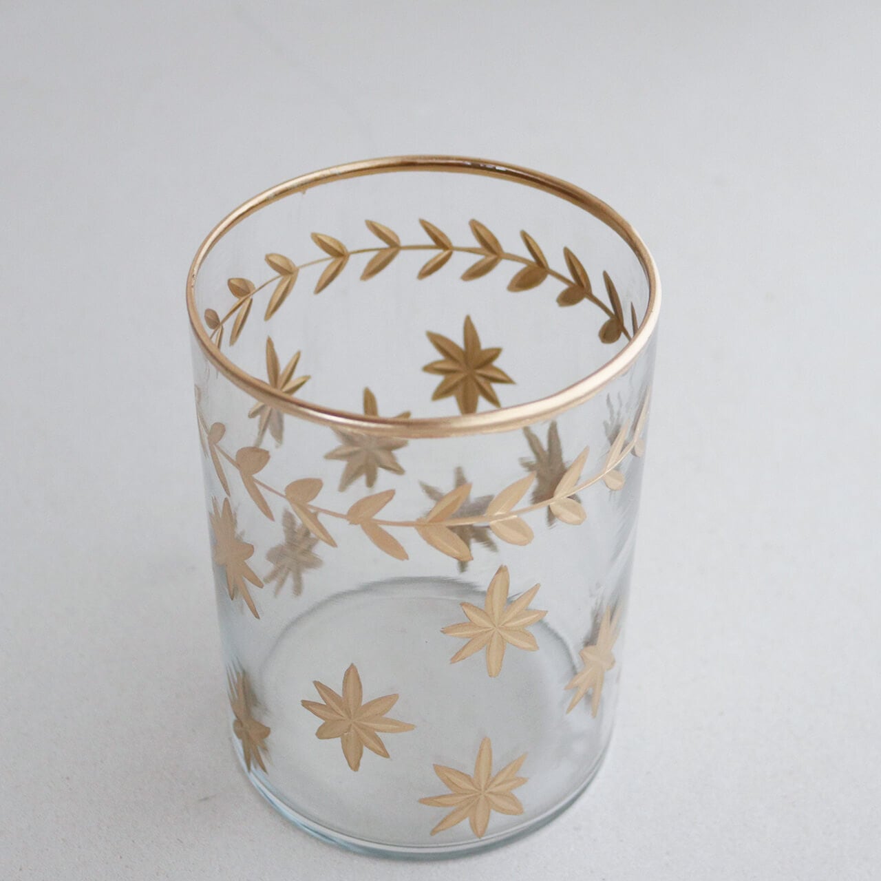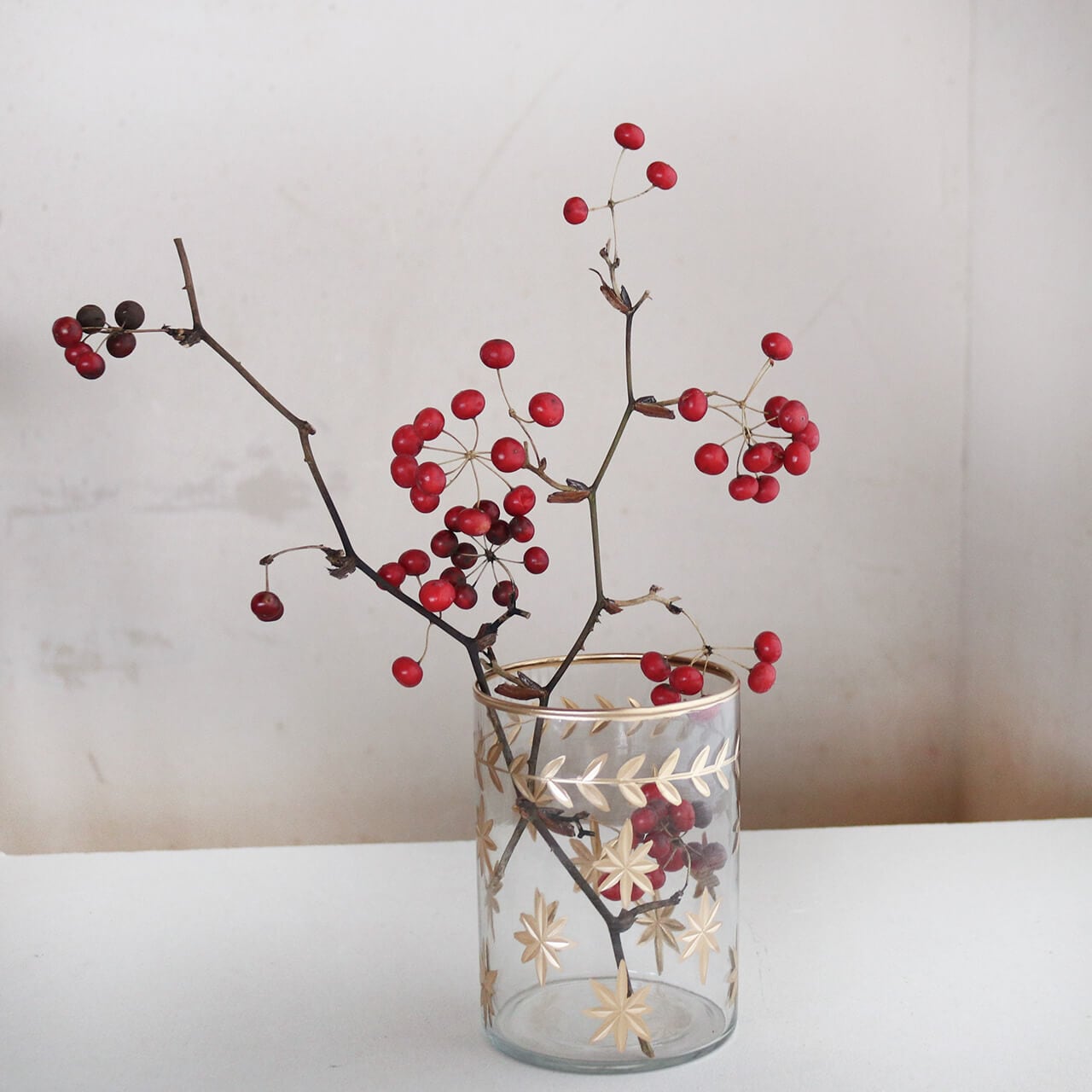 星模様 ガラスベース キャンドルホルダー L クリア 花瓶 フラワーベース ◆ アンティーク調 おしゃれ 北欧ナチュラル インテリア シンプル モダン 円柱形 ドライフラワー サンキライの実 バラの実 クリスマス
