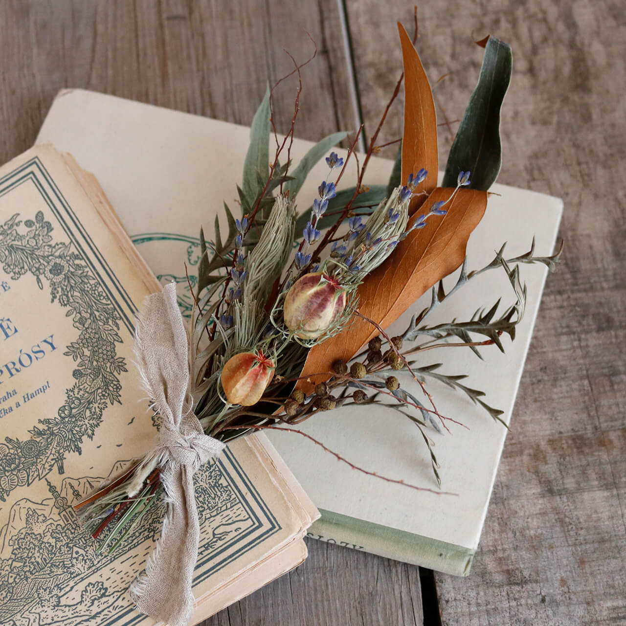 ミニブーケはナチュラルインテリアのさり気ない彩りにぴったり。