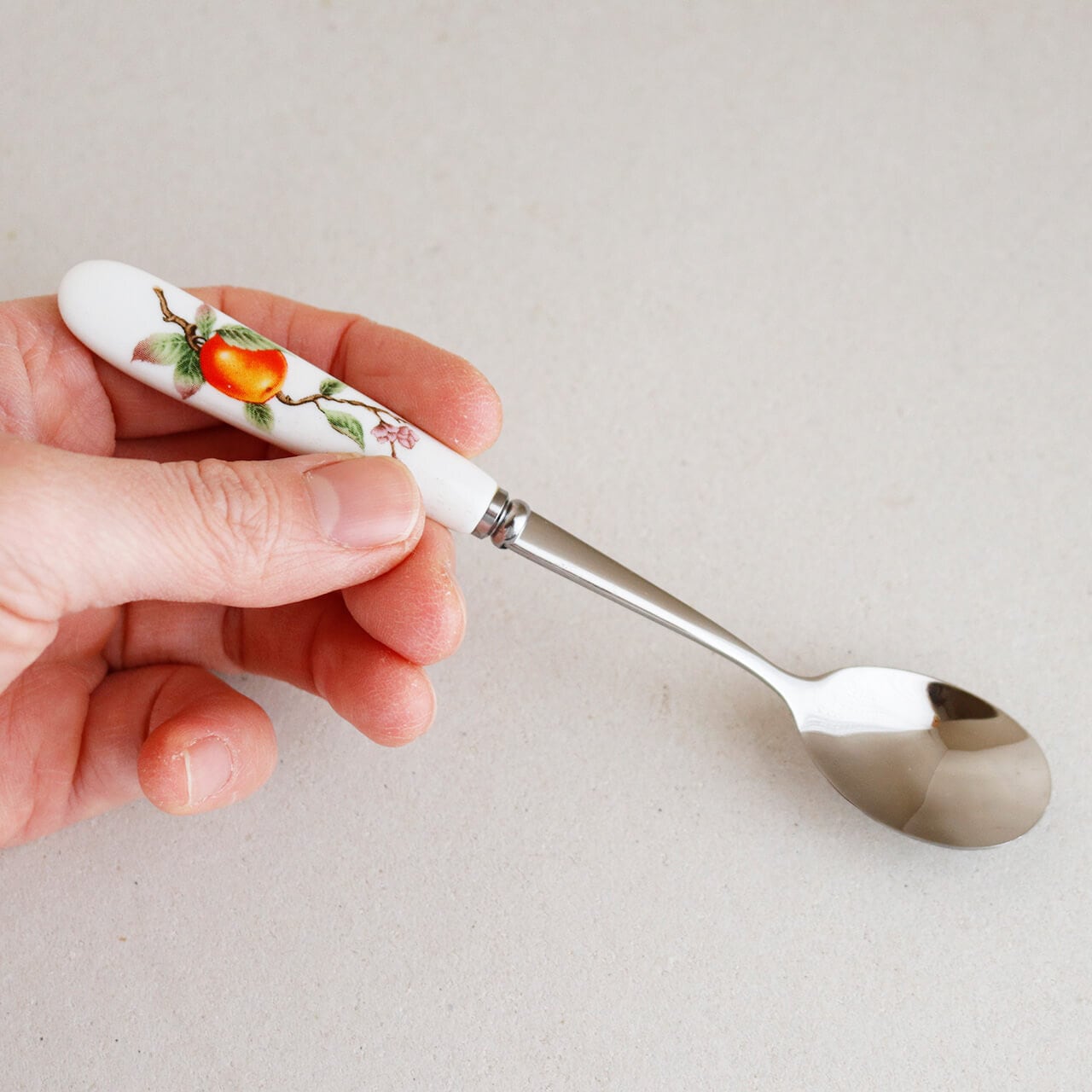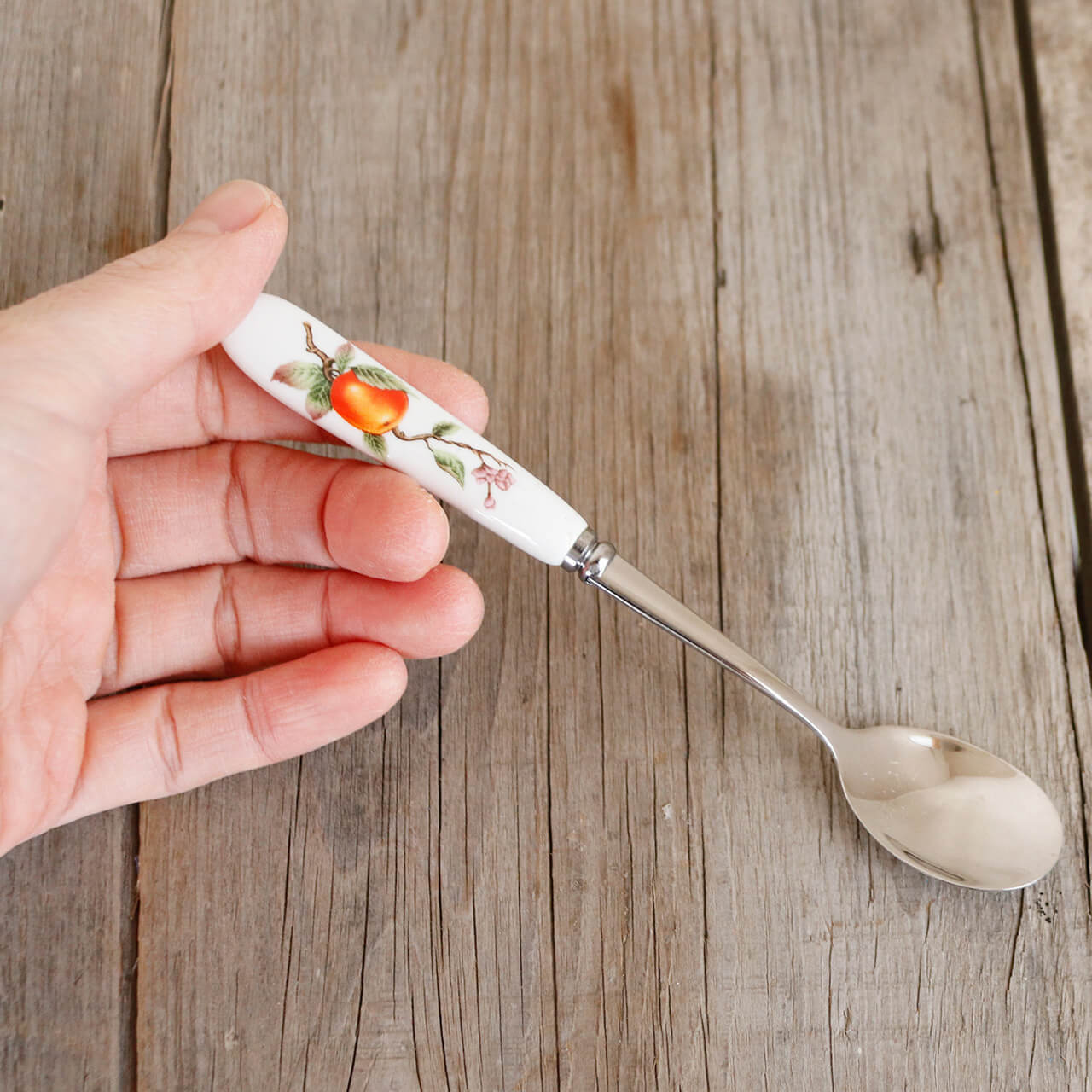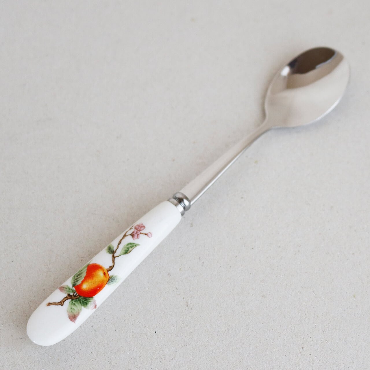 レトロなお花柄がかわいい陶器製の持ち手のスプーンです。