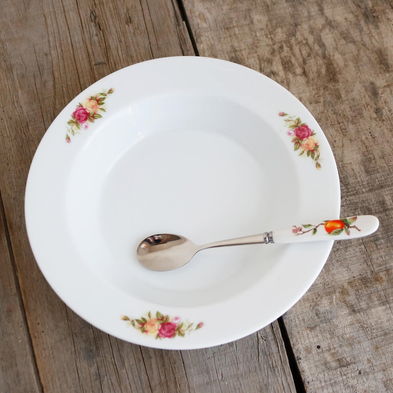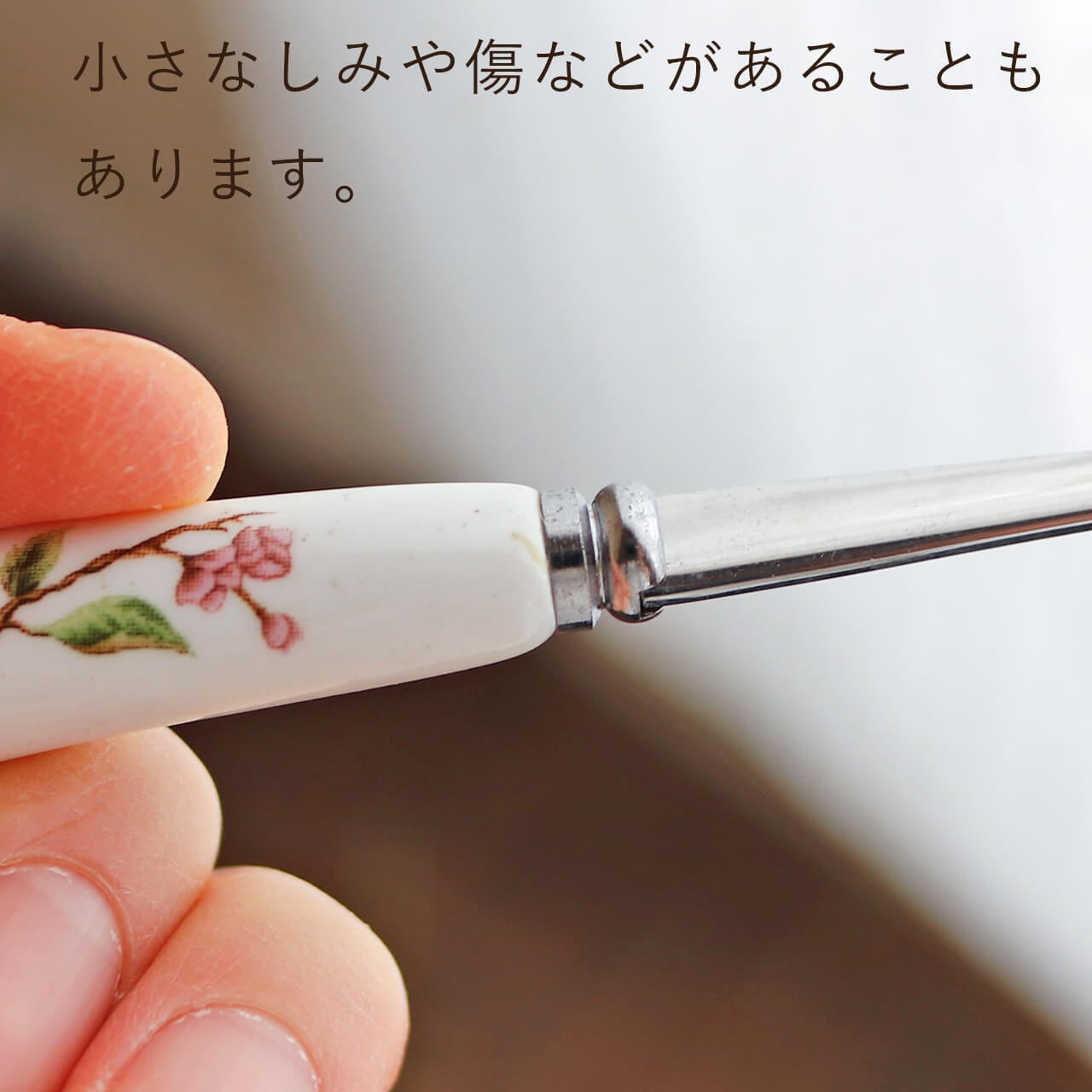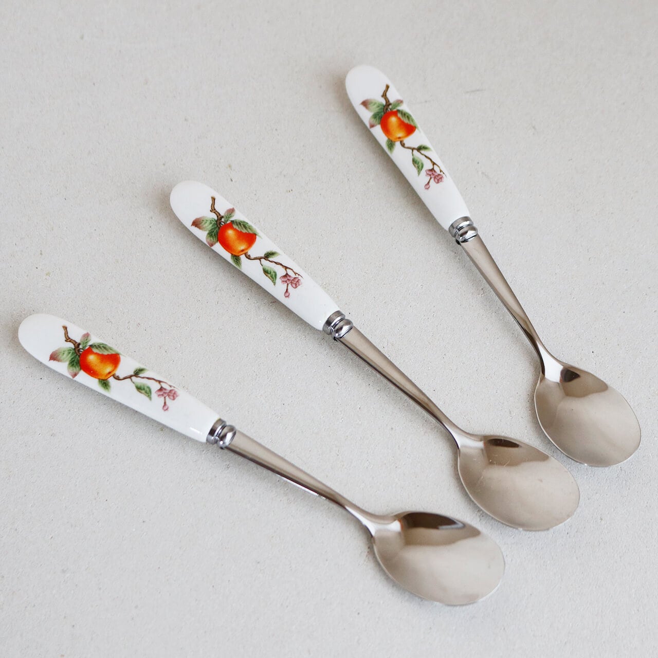 レトロなお花柄がかわいい陶器製の持ち手のスプーンです。