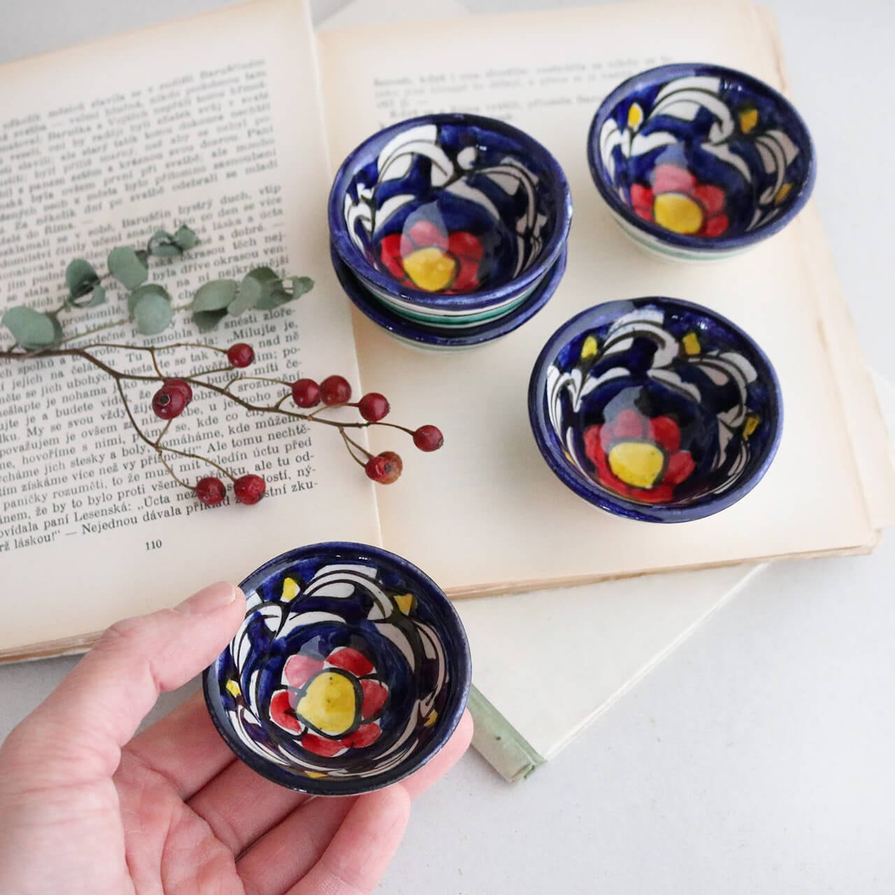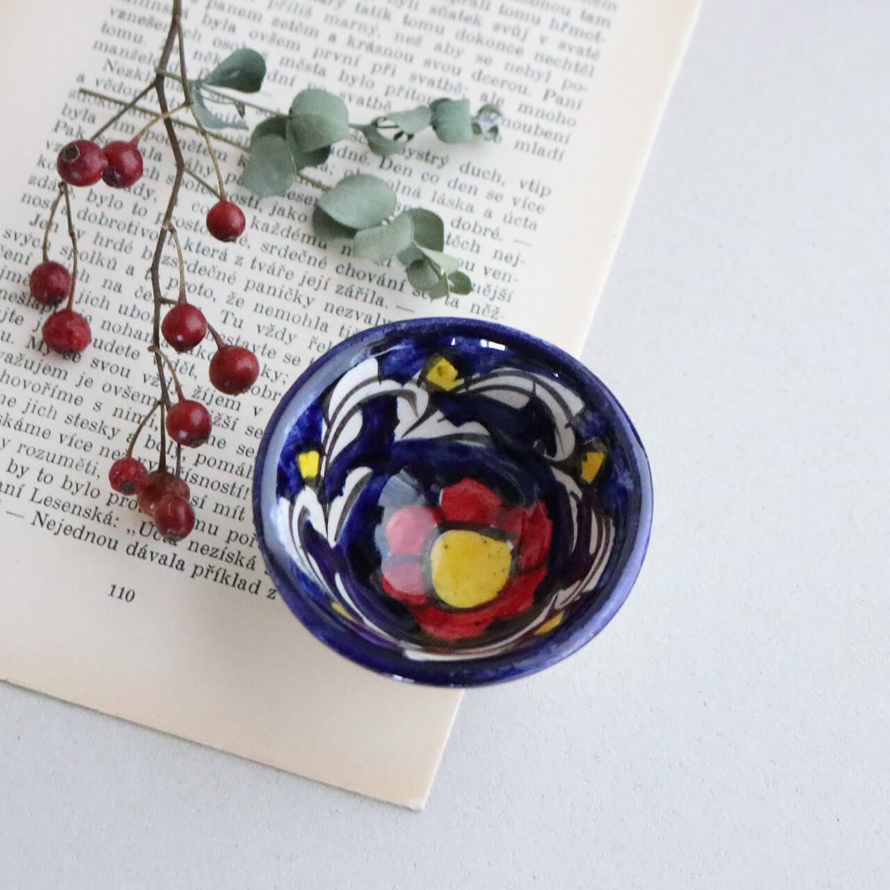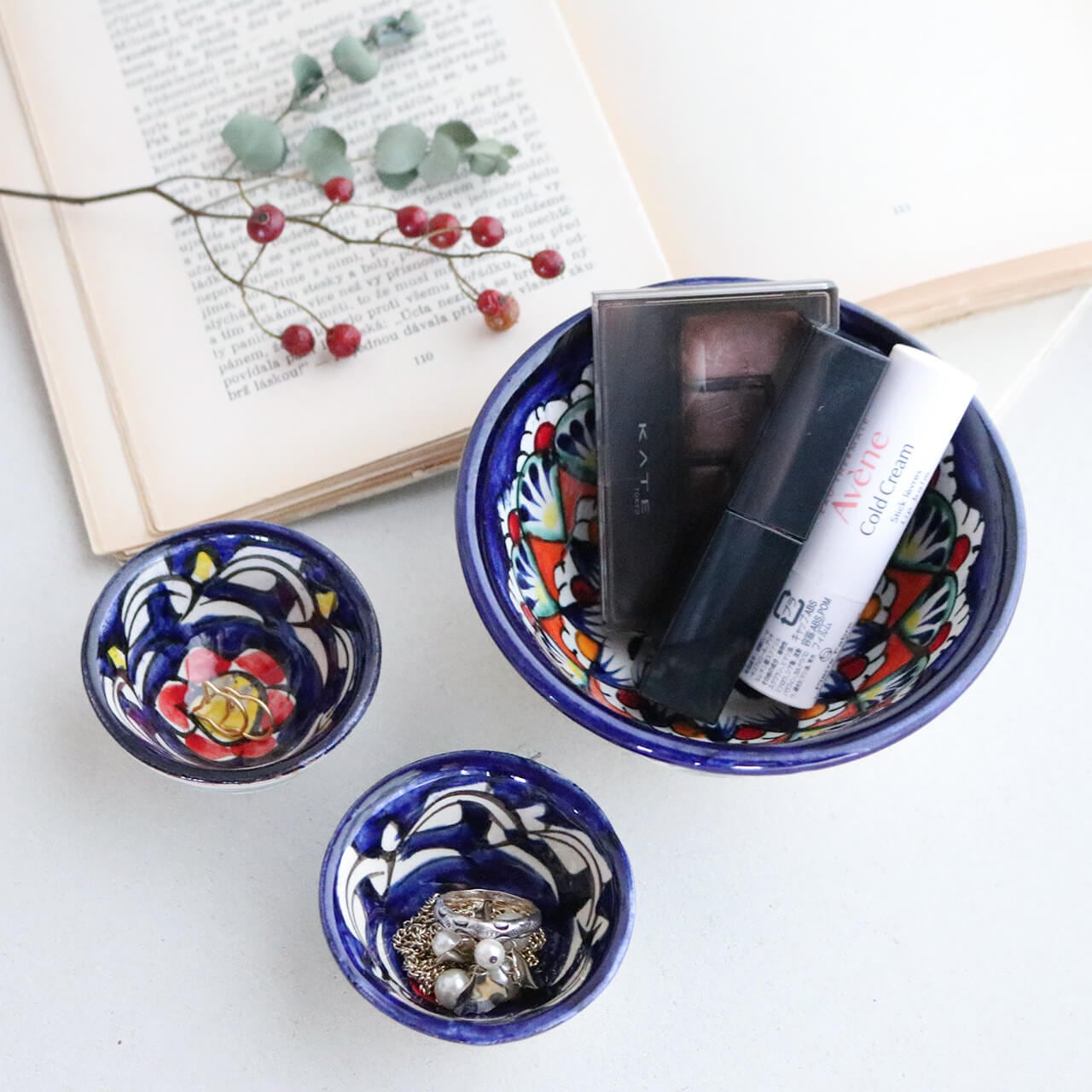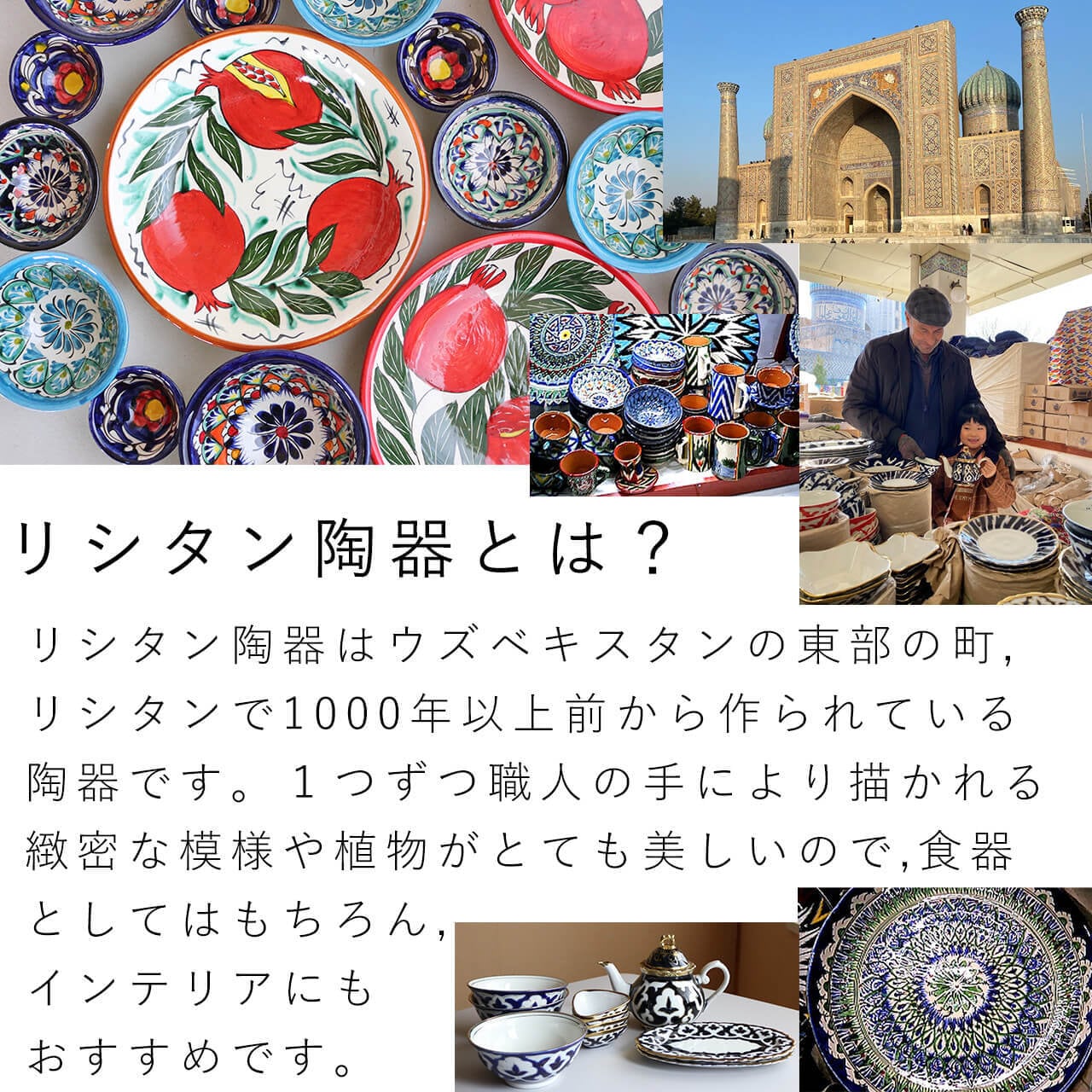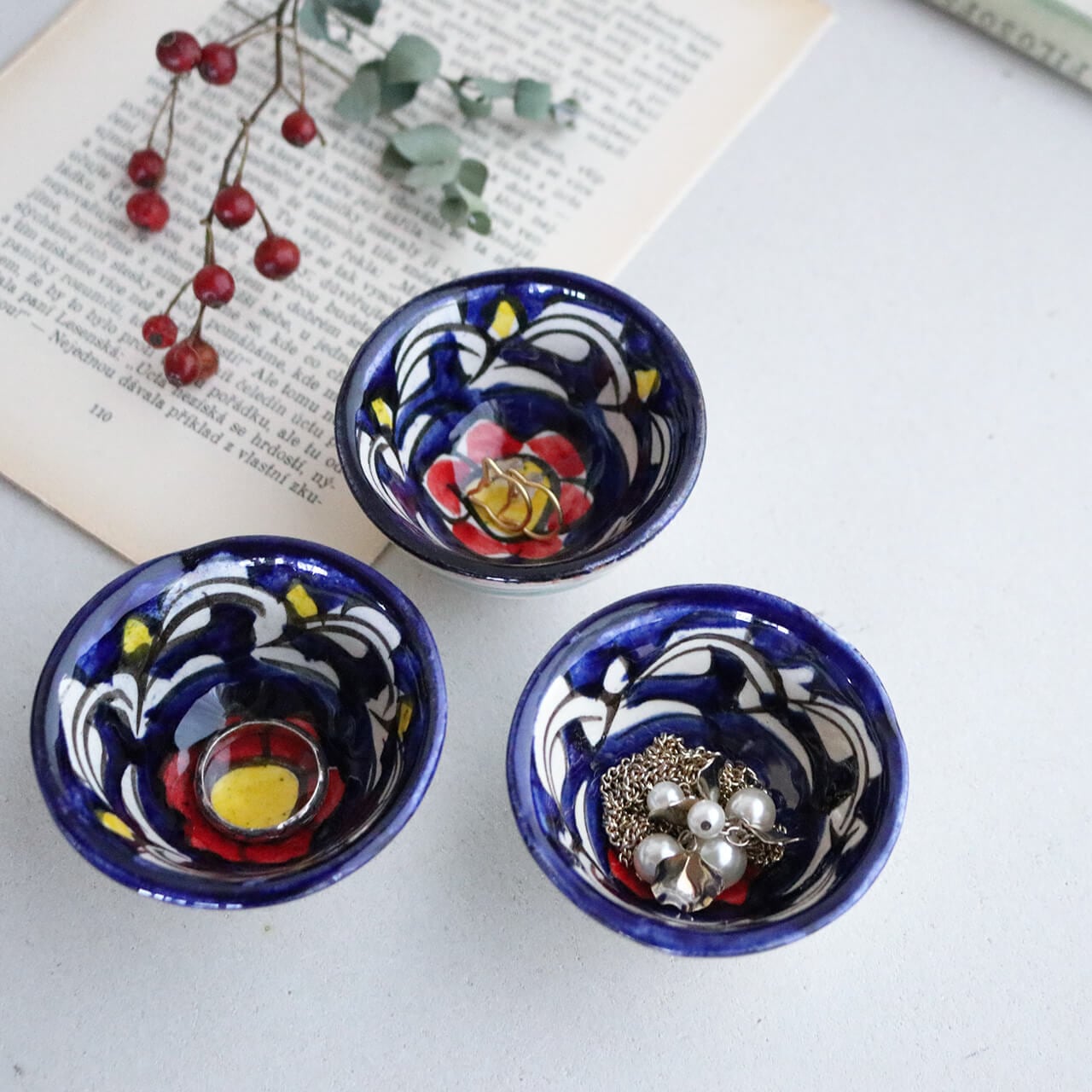 ウズベキスタン リシタン陶器 ボウル 豆皿 ブルー SS * おしゃれ ナチュラル ボタニカル 北欧インテリア アジアン 小物入れ アクセサリートレー リシタンブルー モザイク模様 幾何学模様 盃 豆皿 湯呑 ぐい呑み