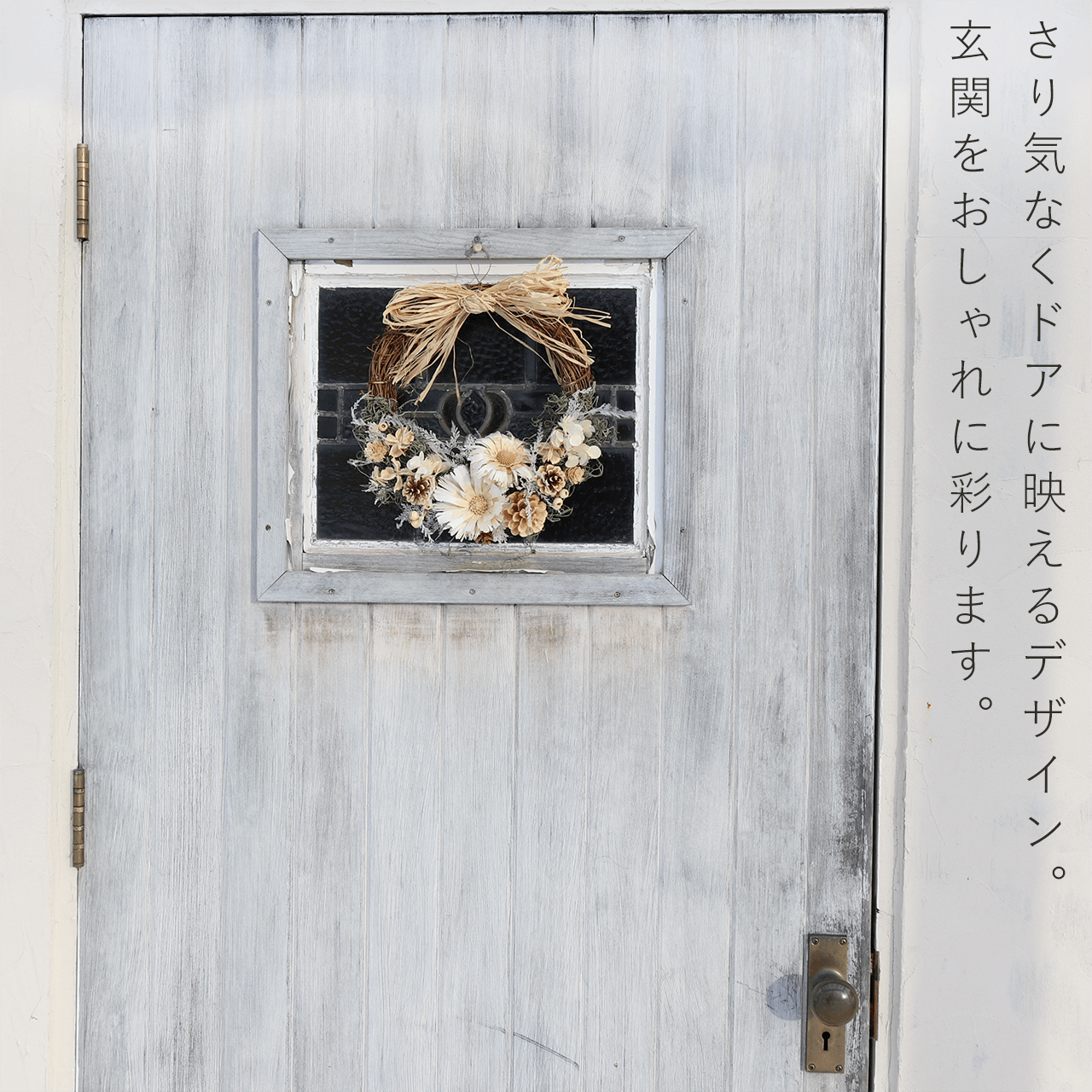 ◆玄関ドアに飾る場合は、長持ちのコツを参考にお手入れをしてください。