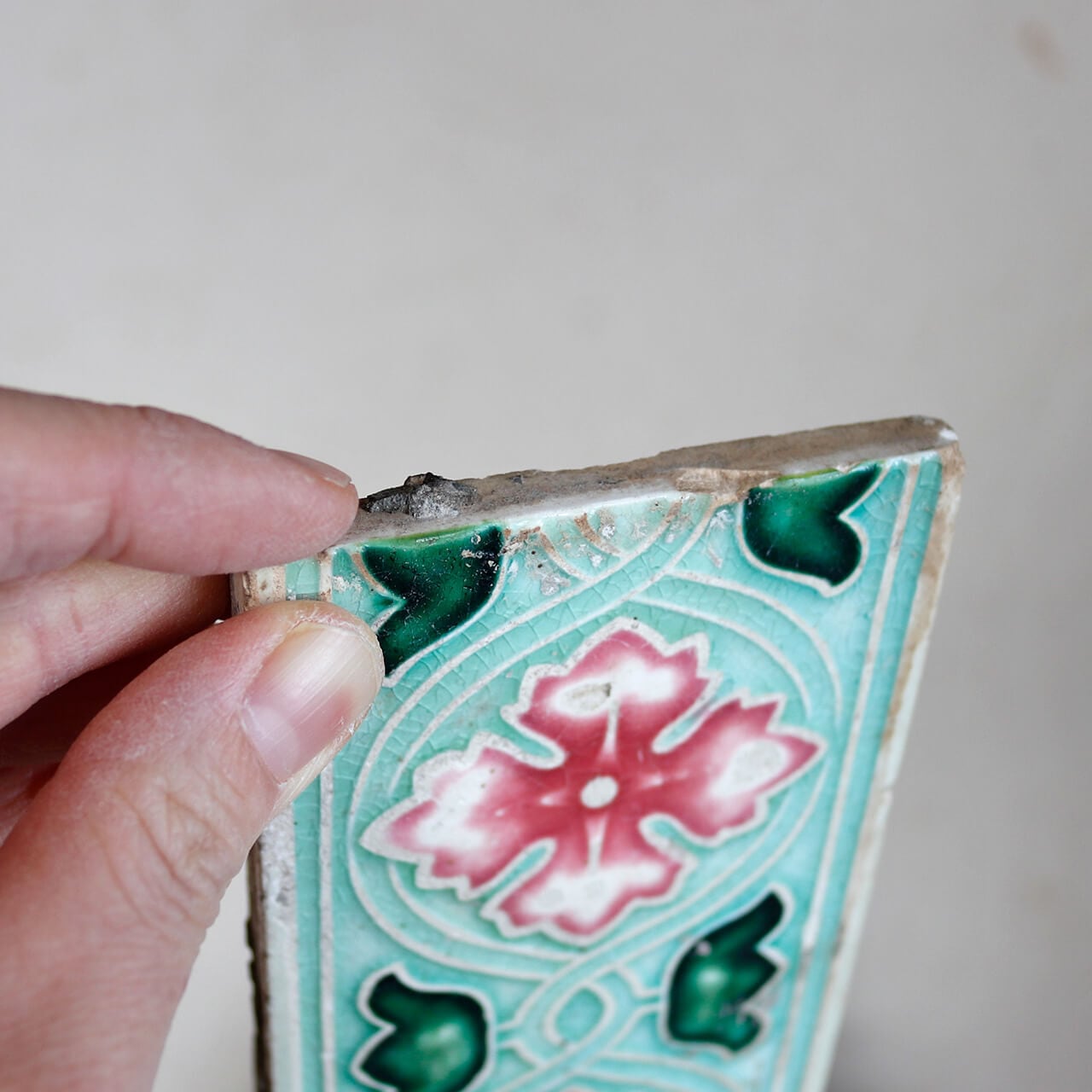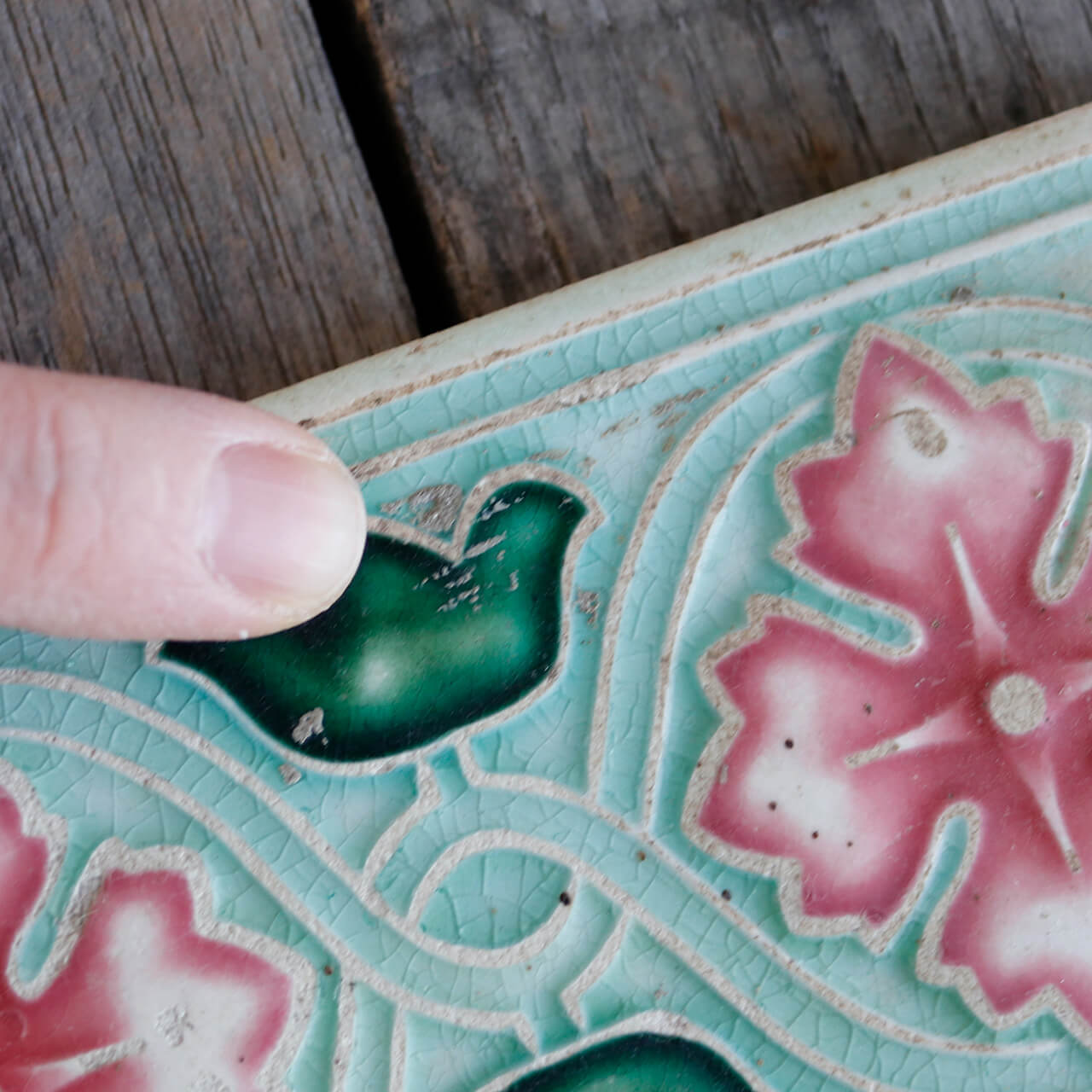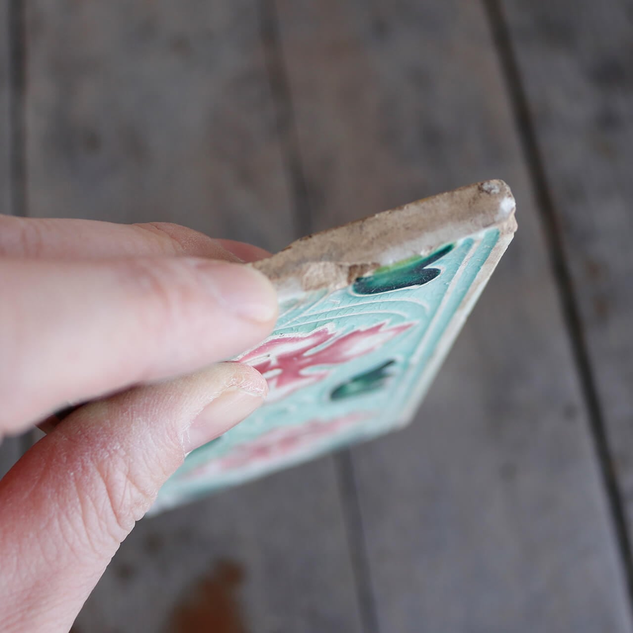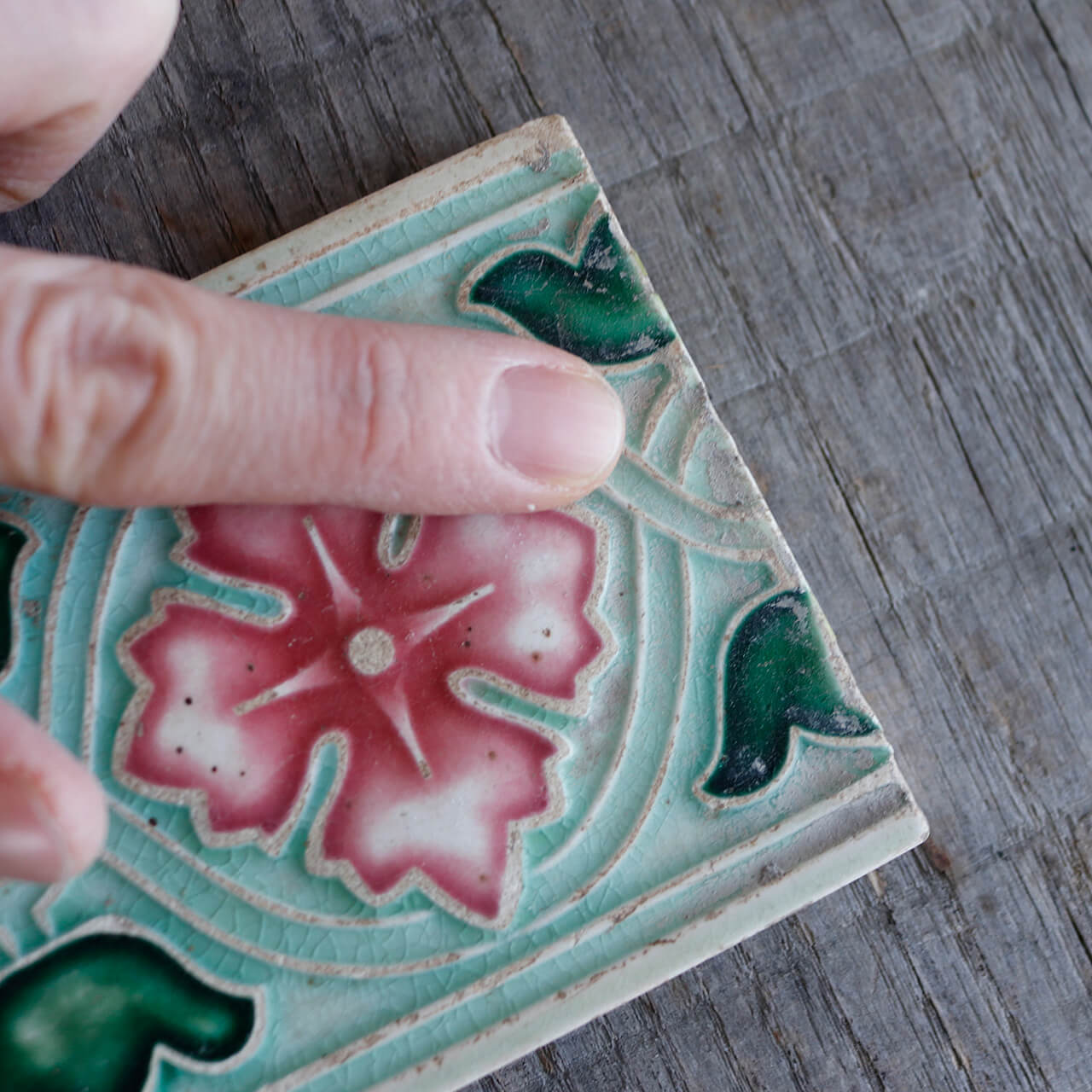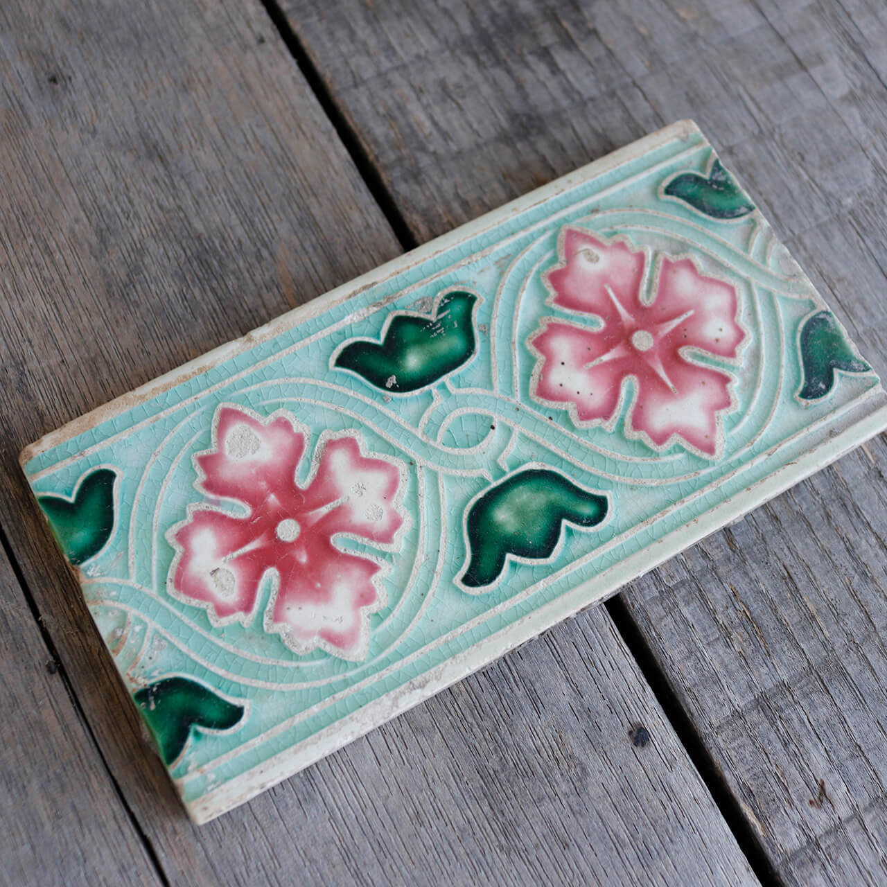 インドのアンティークショップで発見された大正末期から昭和初期に日本で作られたマジョリカタイル。