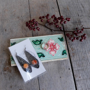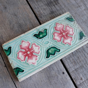レトロ マジョリカタイル ピンクフラワー ◆ タイル ◆ おしゃれ アンティーク調 ナチュラル インテリア 店舗 ディスプレイ アクセサリートレー 小物入れ
