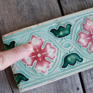 マジョリカタイルとはマヨルカタイル・和製マジョリカタイルともいわれるそうで大正から昭和初期に日本で生産された、レリーフ状の凹凸と鮮やかな色釉が特徴の装飾タイルです。