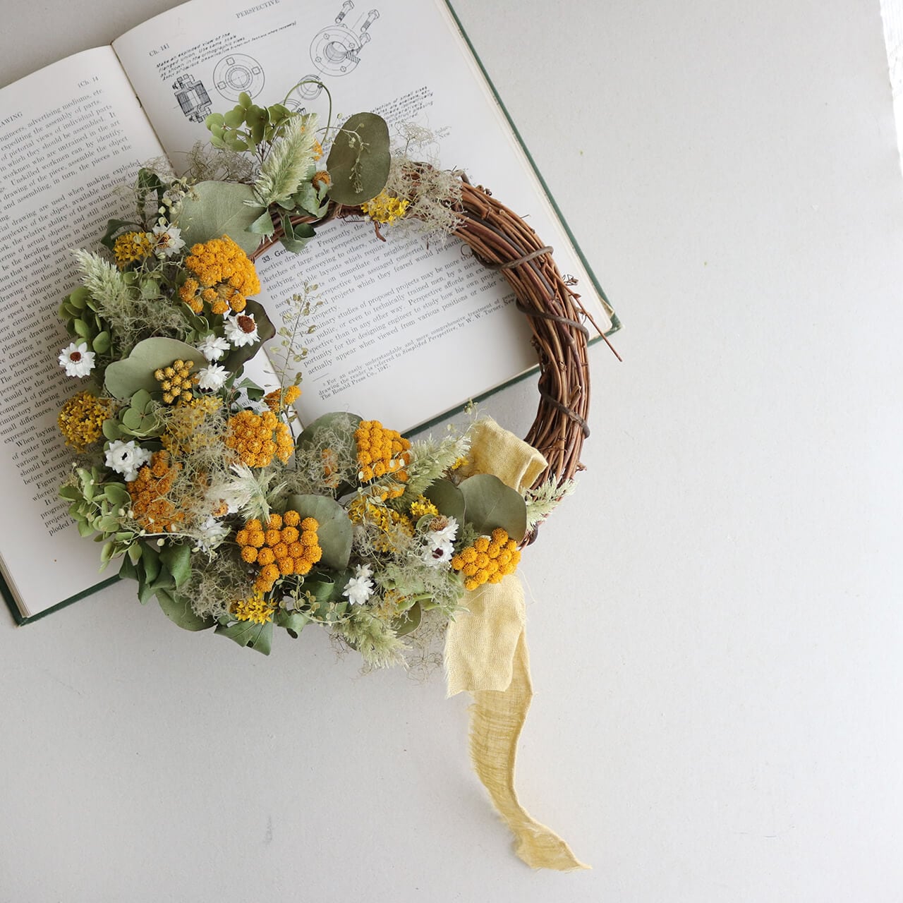 ◆画像はイメージですのでイエローハーフムーンリース以外のリースやドライフラワー・雑貨などは商品に含まれておりません。