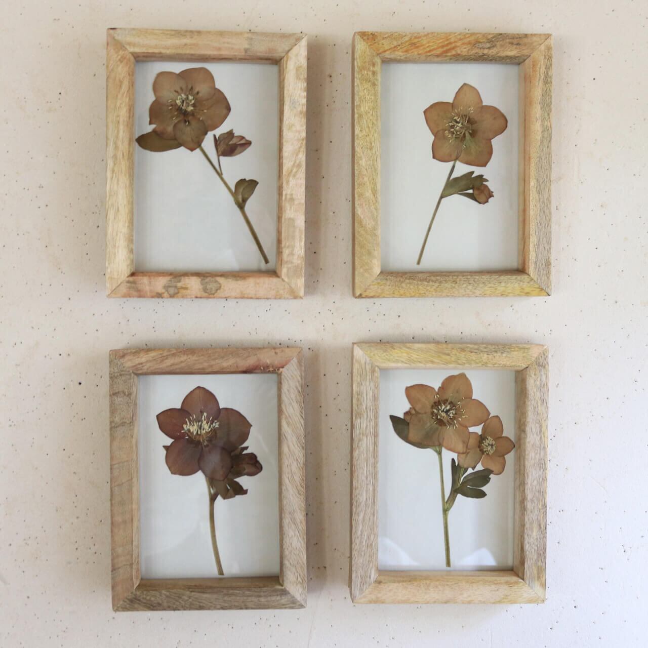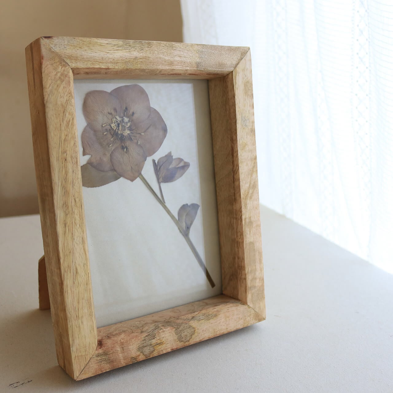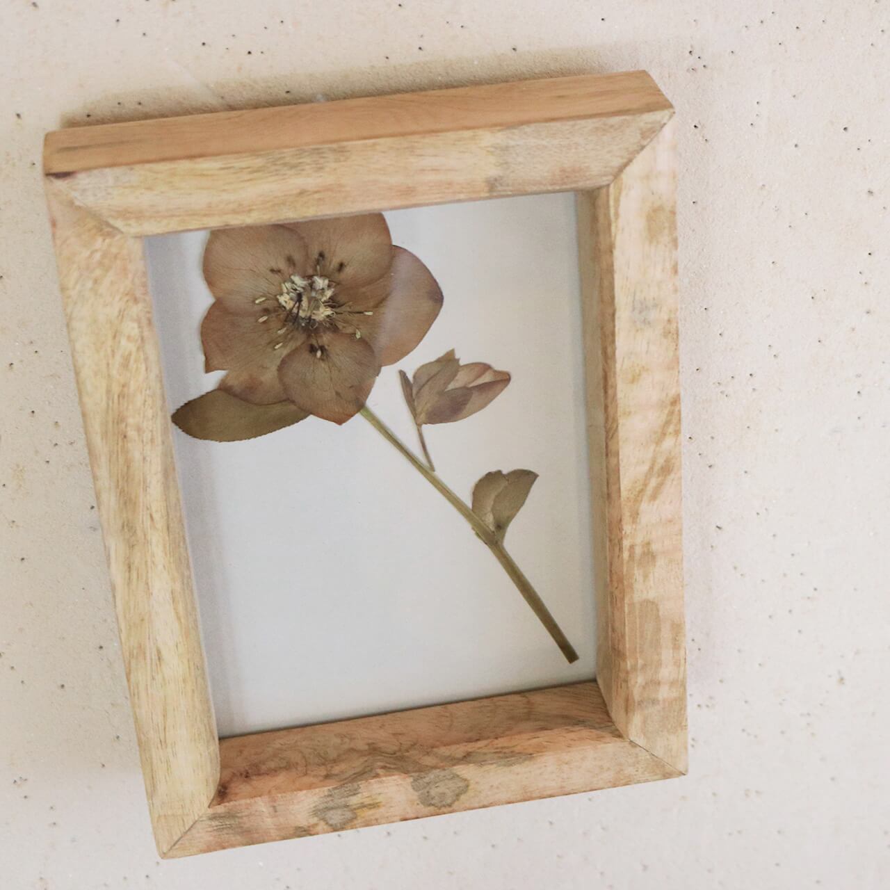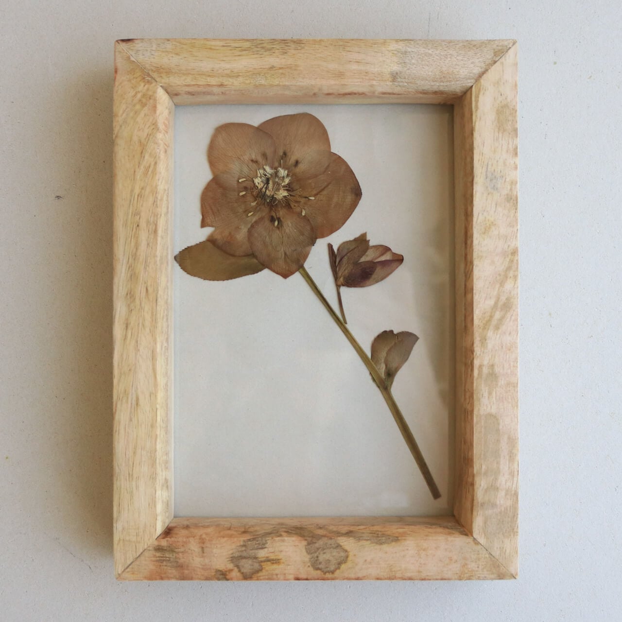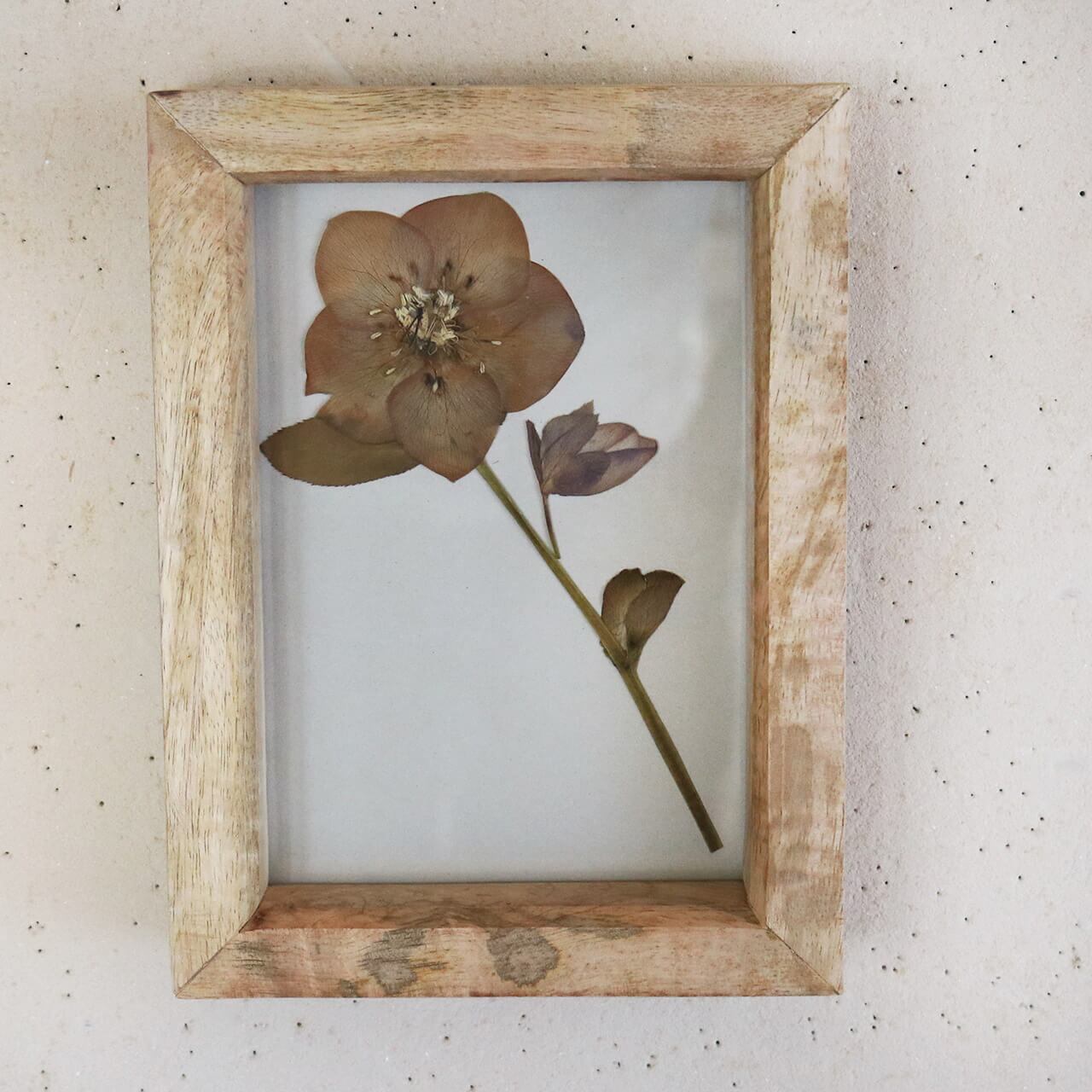 2L判サイズのシンプルなフォトフレームに植物標本のようにクリスマスローズをあしらいました。