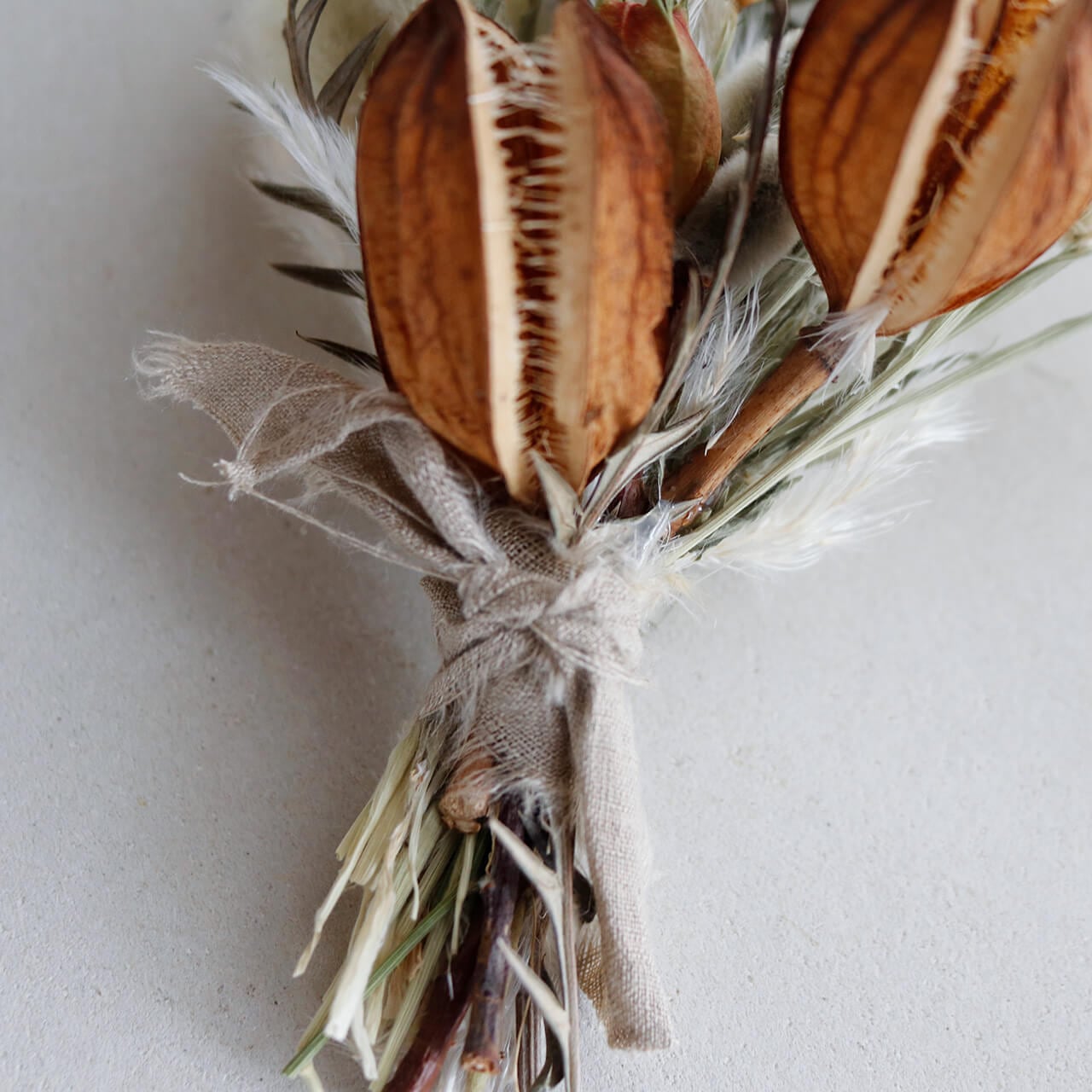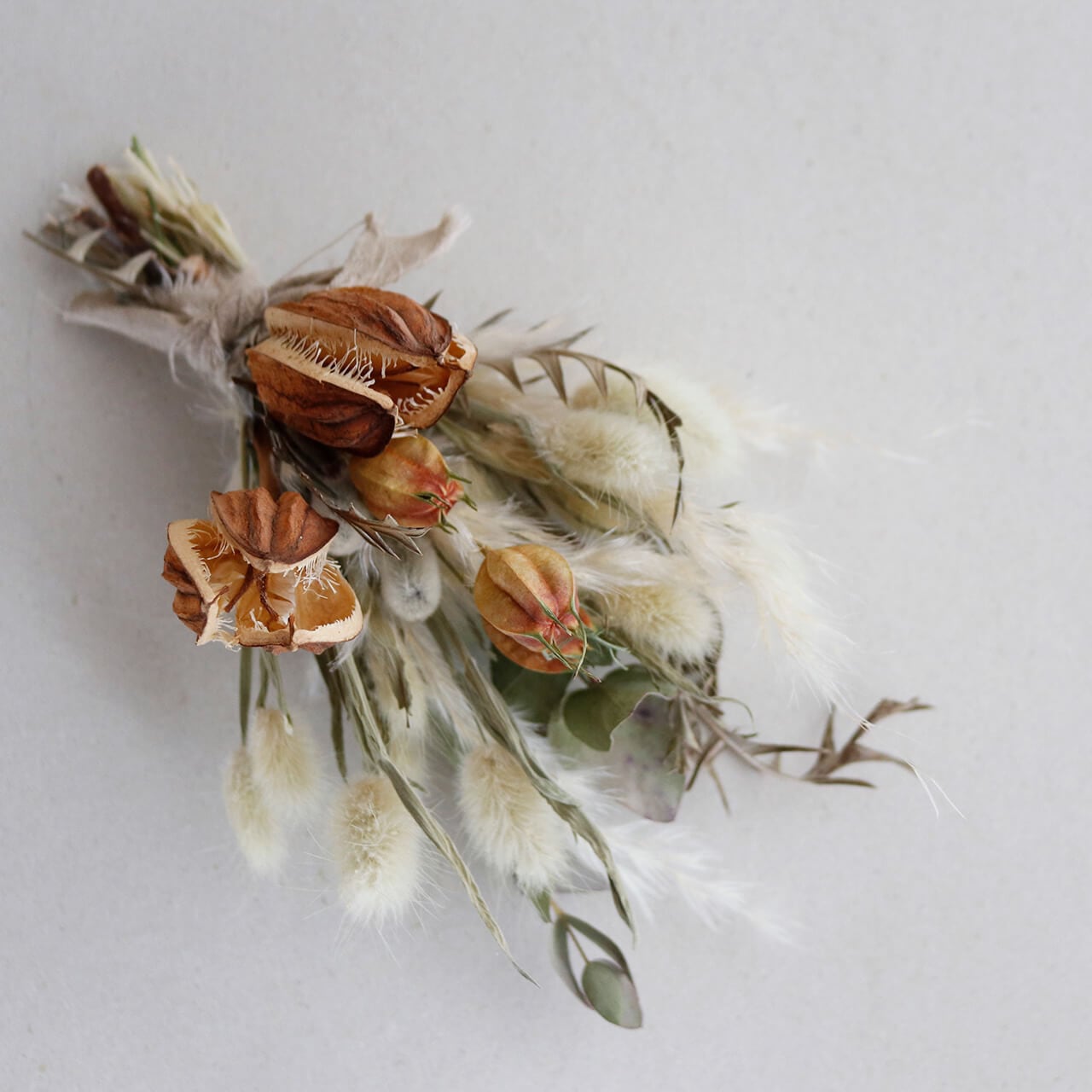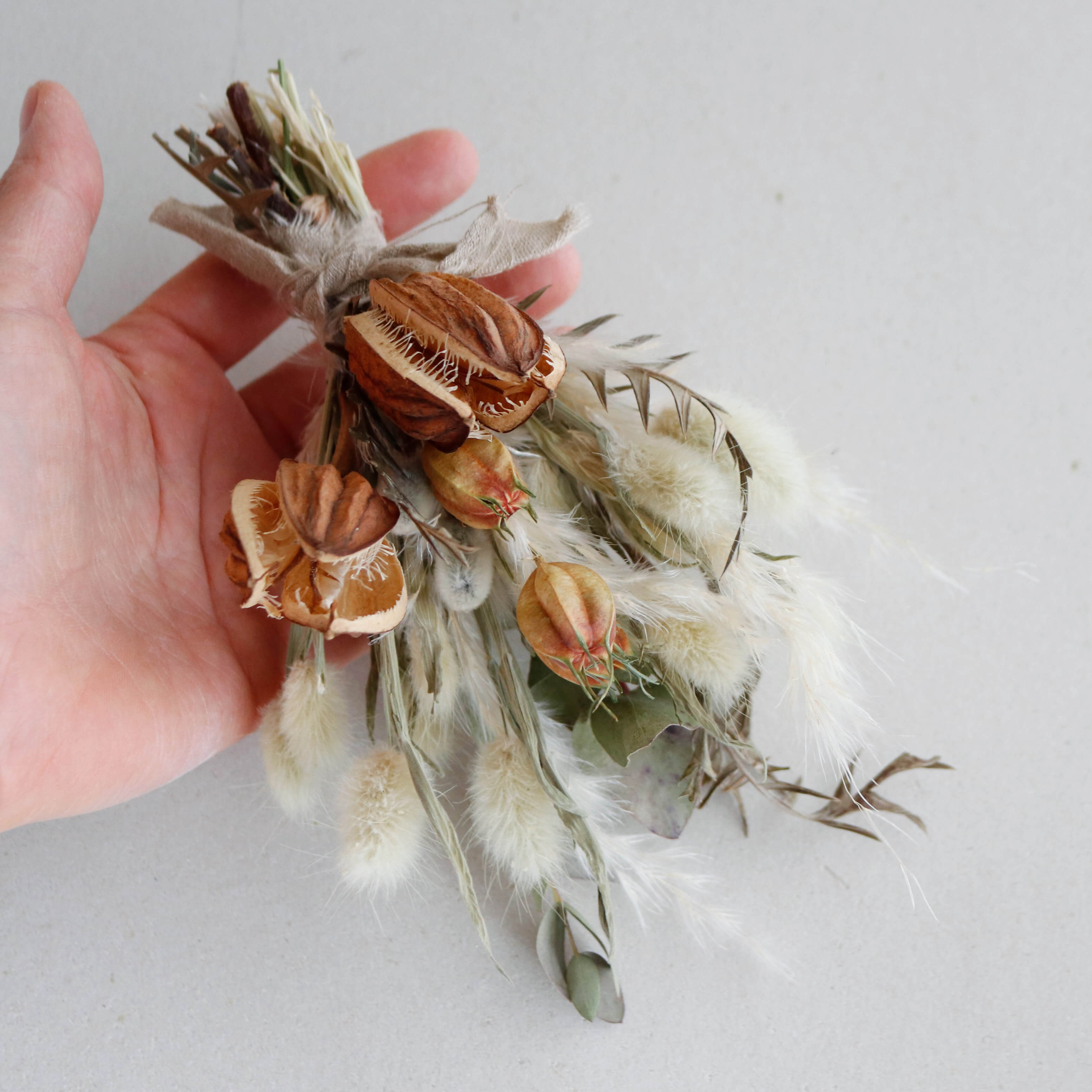 ミニブーケはナチュラルインテリアのさり気ない彩りにぴったり。