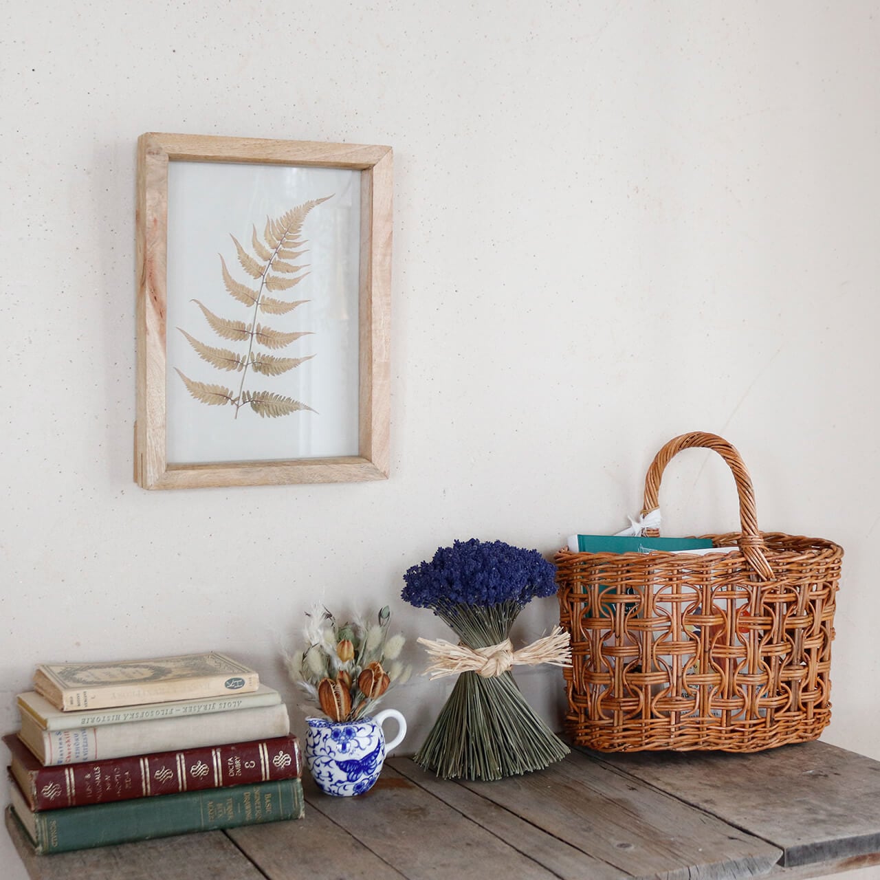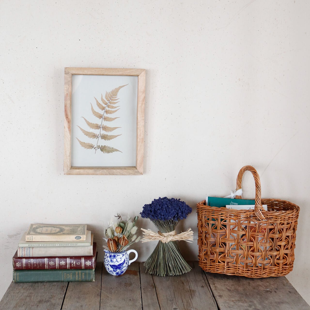 グリーンやナチュラルな雑貨とディスプレイするとまるで洋書にでてくるようなシンプルで素朴なインテリアに。
