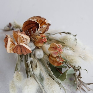 【1点もの】ウバユリとニゲラ ネコヤナギのふわふわミニブーケ * ドライフラワー ブーケ 花束 グリーン ホワイト 北欧 ナチュラルインテリア 開店祝い 誕生日 ナチュラル かわいい ボタニカル おしゃれ 春色 玄関