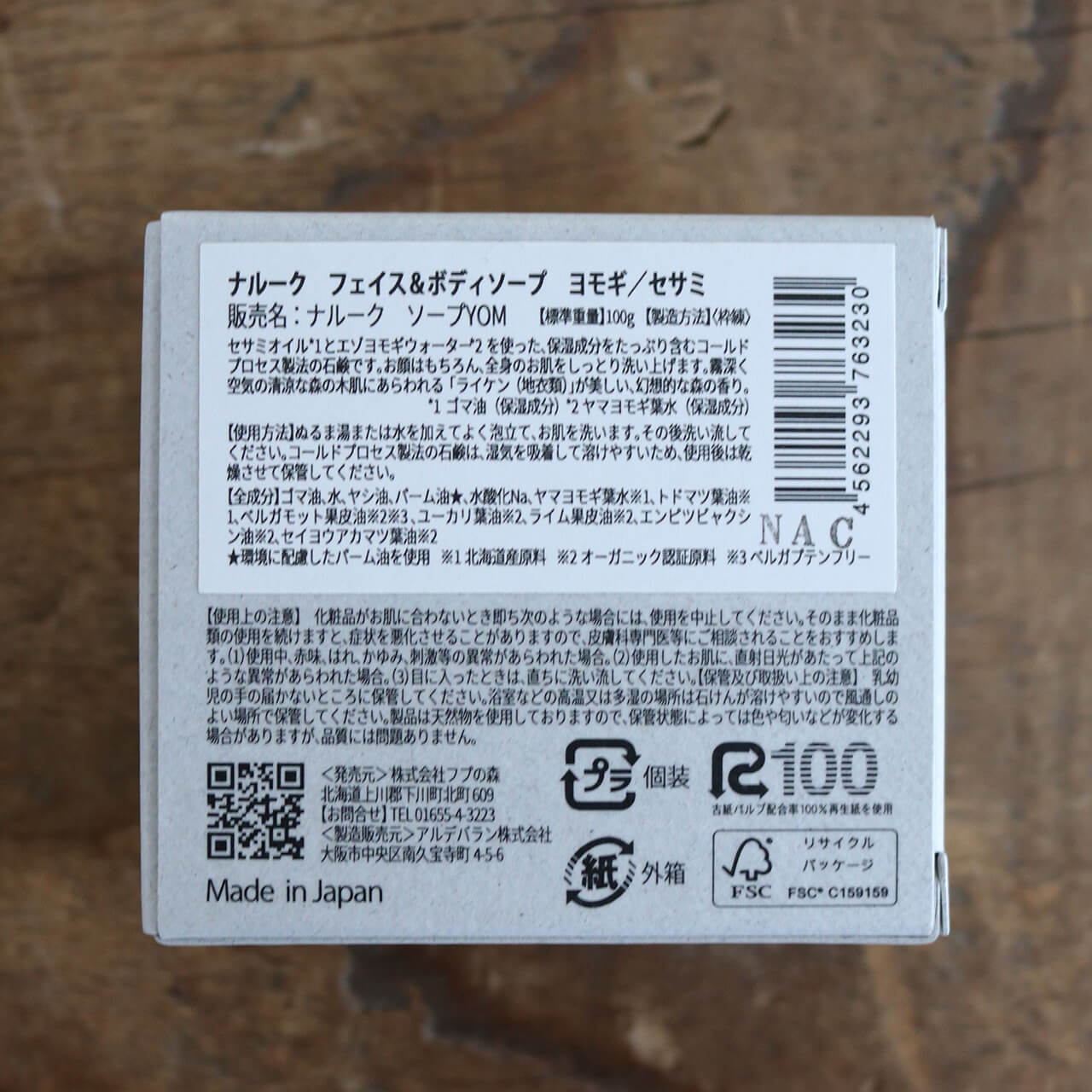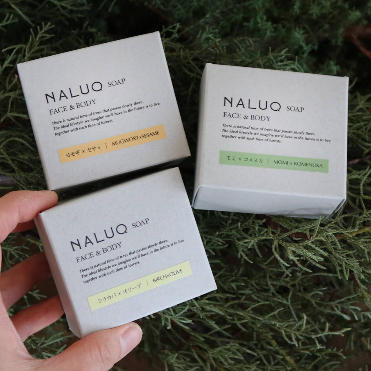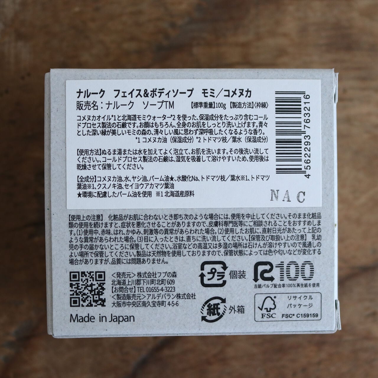 フプの森 NALUQ ナルーク フェイス&ボディソープ ( 固形石鹸 ) / モミ×コメヌカ シラカバ×オリーブ ヨモギ×セサミ * ライケン スプリングエフェメラル 【 北海道モミ 】