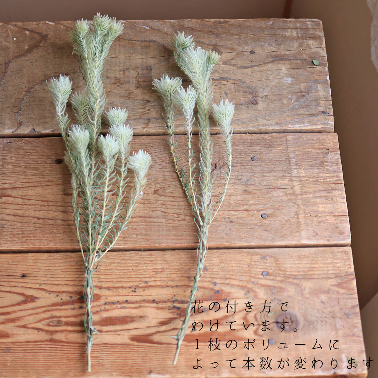 グリーンとあわせたり、ホワイト系・ピンク系などどんなお花と組み合わせても素敵です。 枝にもふわふわの葉がついているので、スワッグのボリュームアップにもおすすめです。