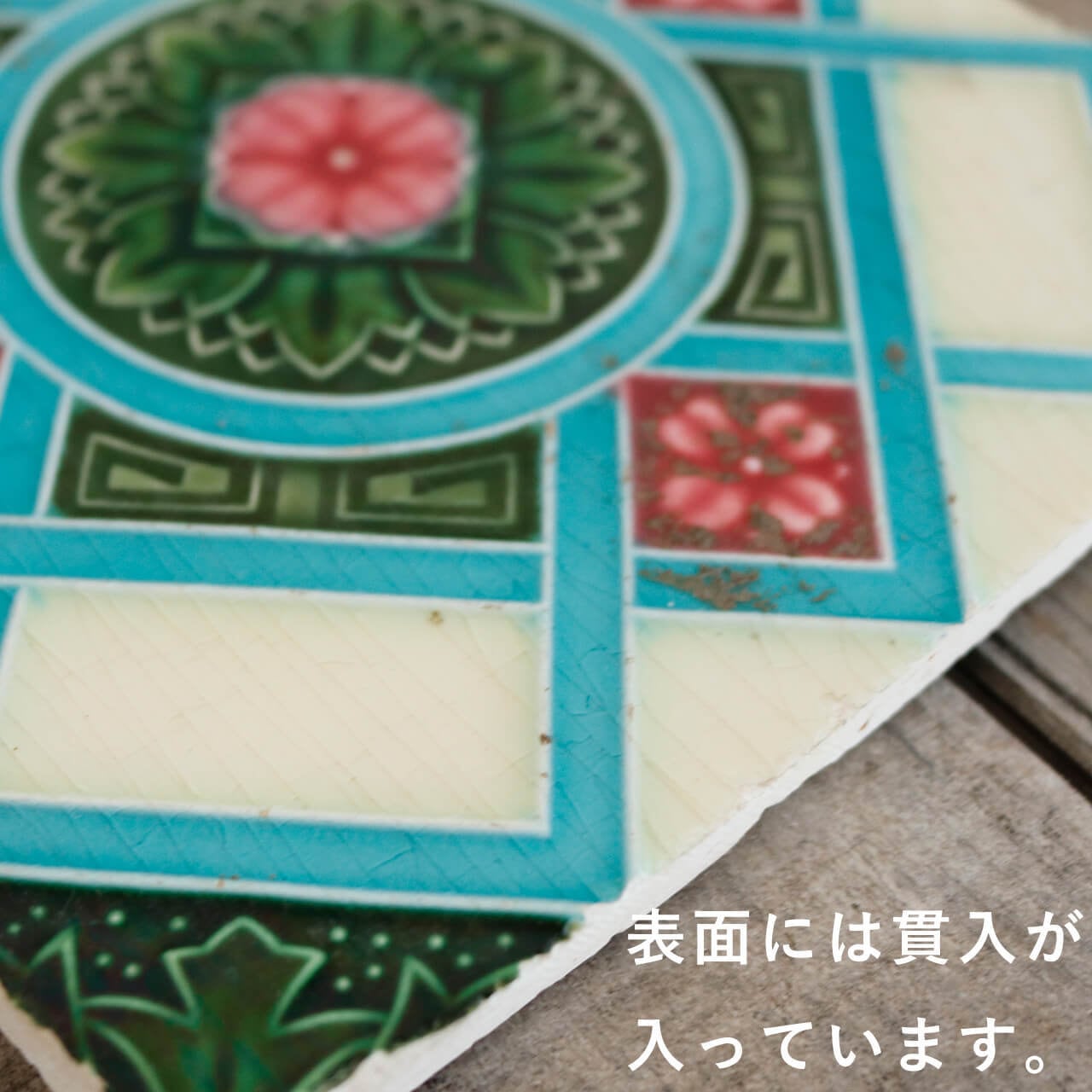 ■こちらはアンティークタイルのリメイク品を雑貨メーカーより仕入れたものとなります。当社では製品の由来や詳細等につきましてはお答えできかねます。