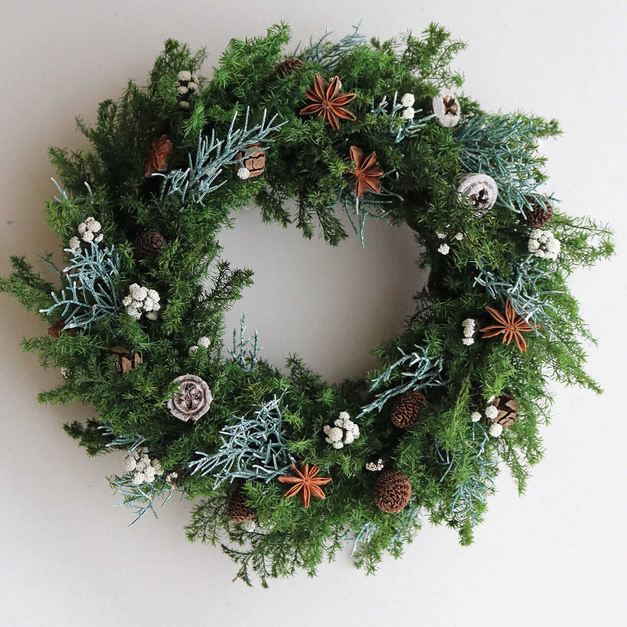 スターアニスと木の実の針葉樹リース ◆ プリザーブドフラワー クリスマスリース