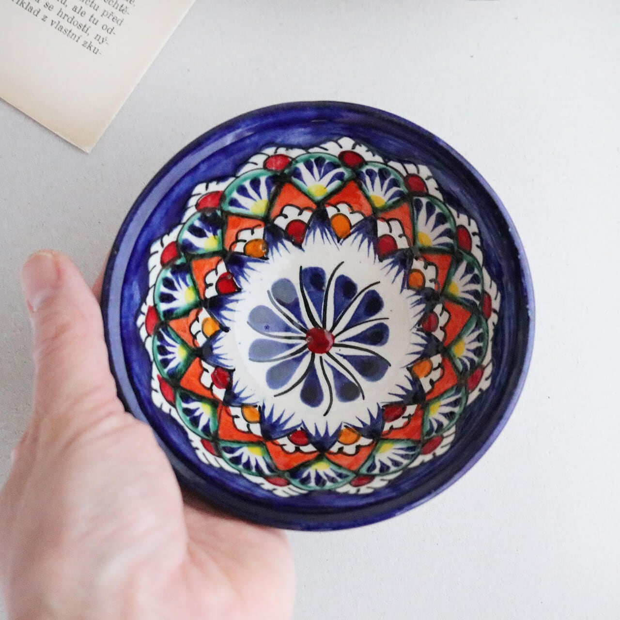 ブルーのモザイク模様がかわいい陶器製ボウルです。
