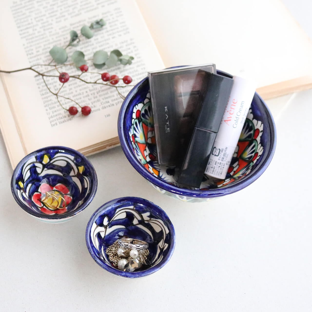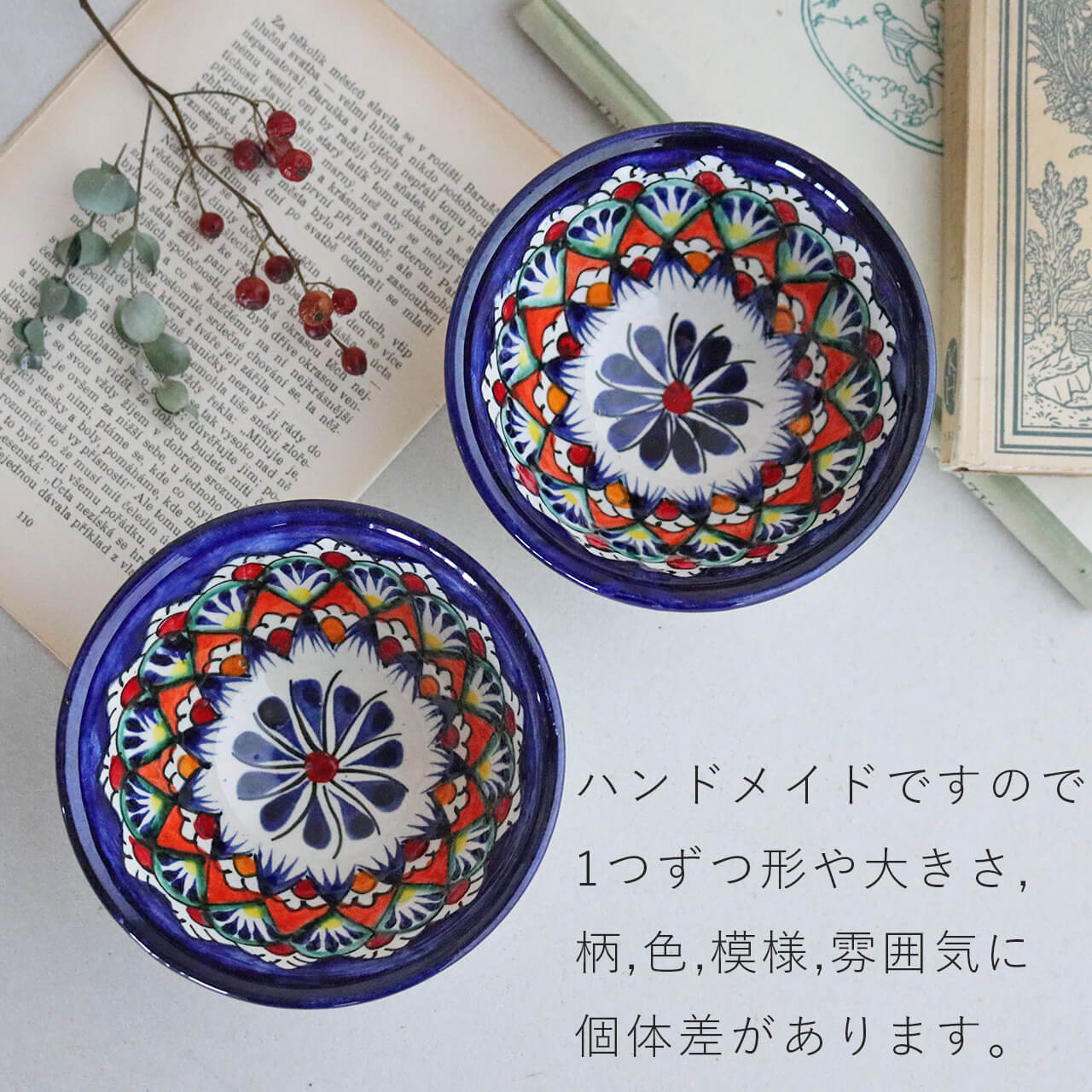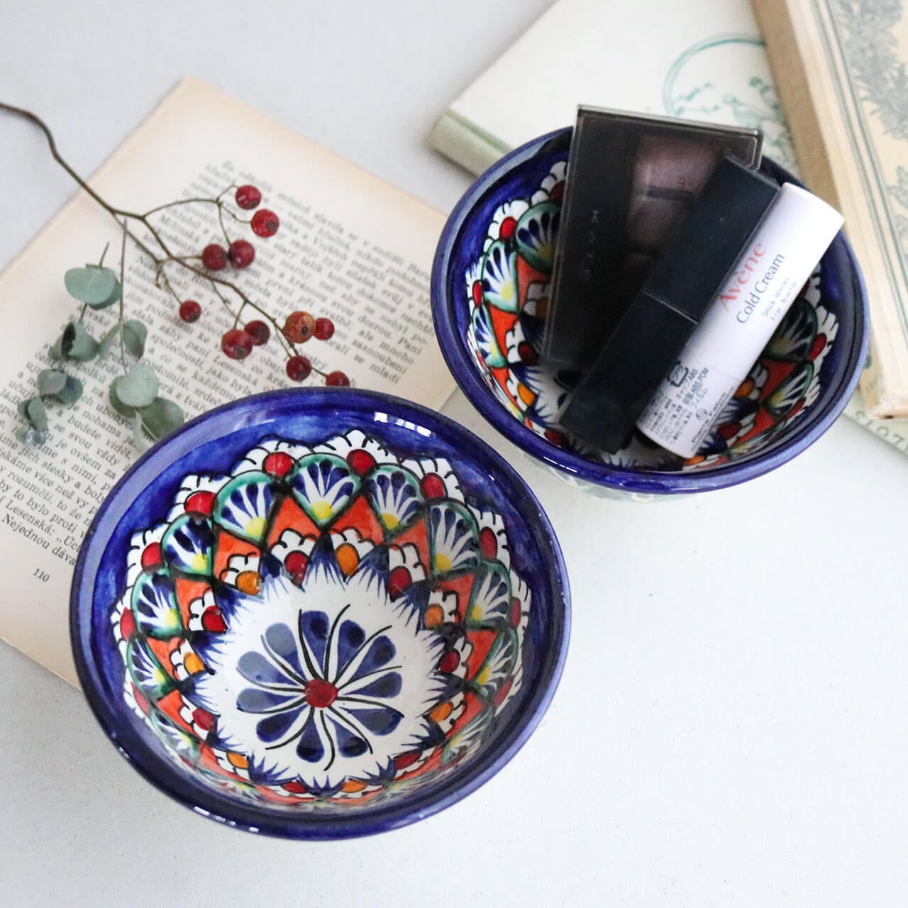 ウズベキスタン リシタン陶器 ボウル ブルー L * おしゃれ ナチュラル ボタニカル 北欧インテリア アジアン 小物入れ アクセサリートレー リシタンブルー モザイク模様 幾何学模様 小鉢 器