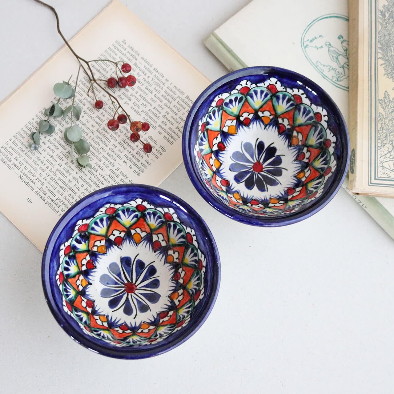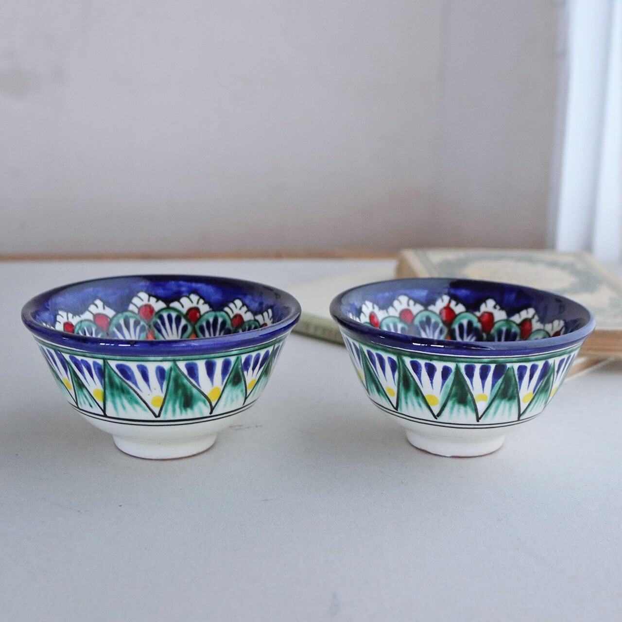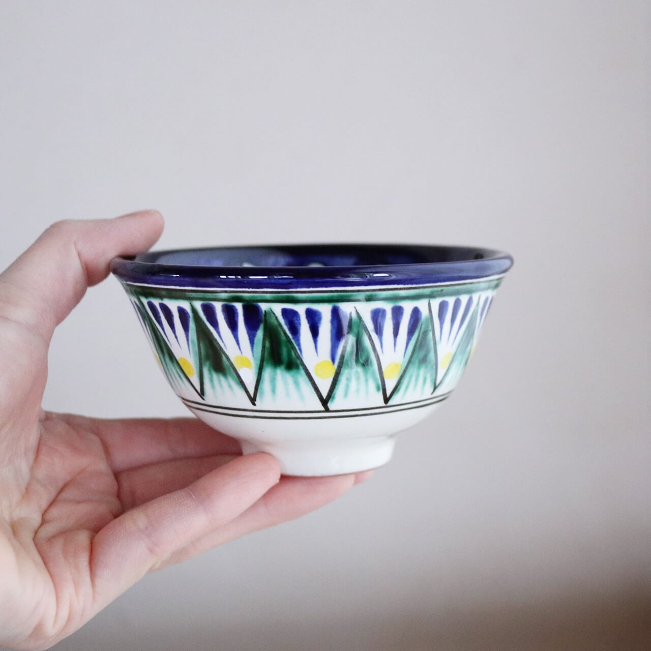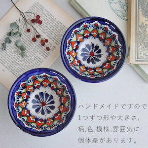 ウズベキスタン リシタン陶器 ボウル ブルー L * おしゃれ ナチュラル ボタニカル 北欧インテリア アジアン 小物入れ アクセサリートレー リシタンブルー モザイク模様 幾何学模様 小鉢 器